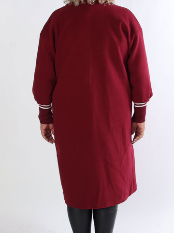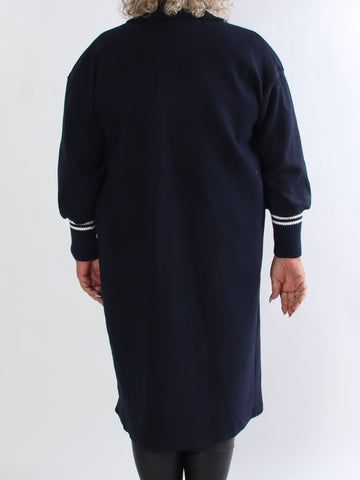 Mirindi - Plus size strikkjole med striber og knapper