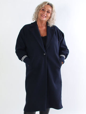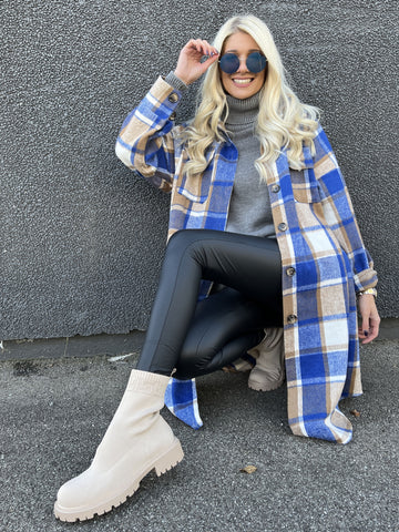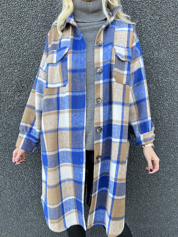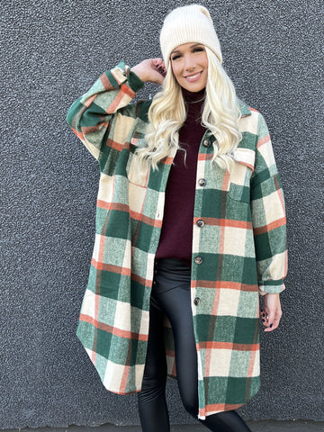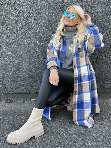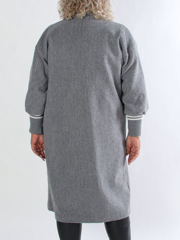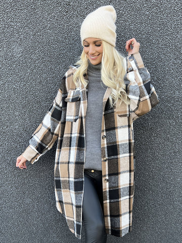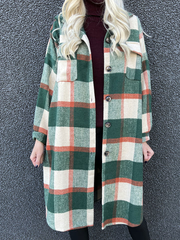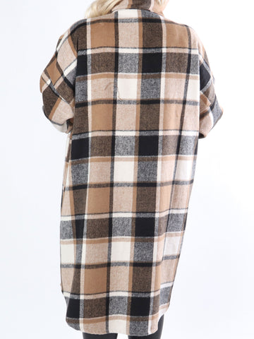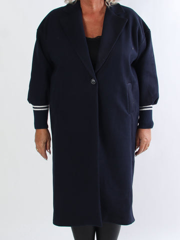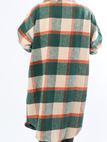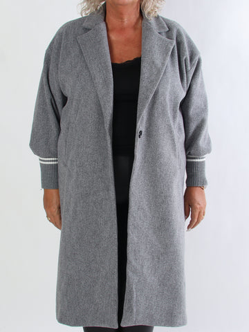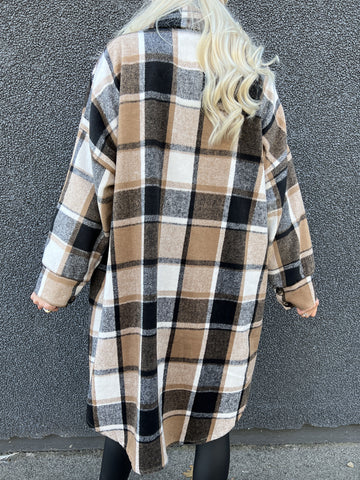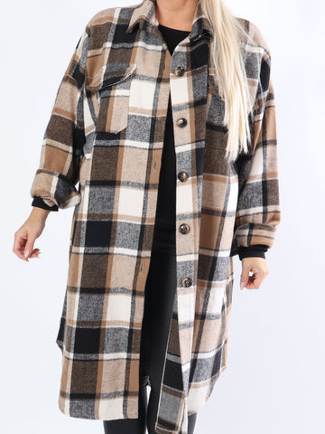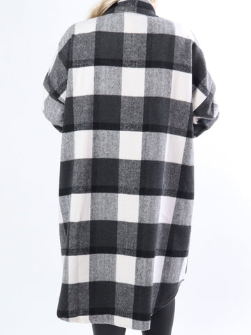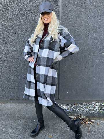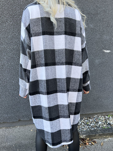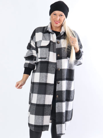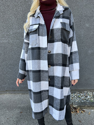 Natalia - Lang ternet plus size jakke med knapper