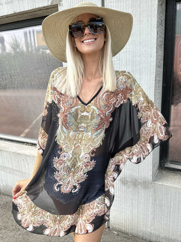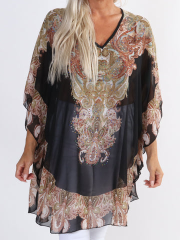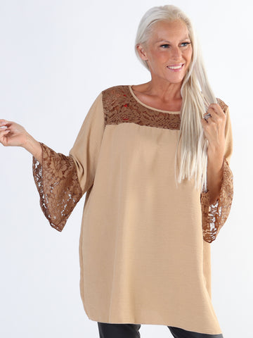 Mellie - Plus size farvet semi-transparent tunika med similisten