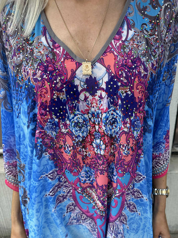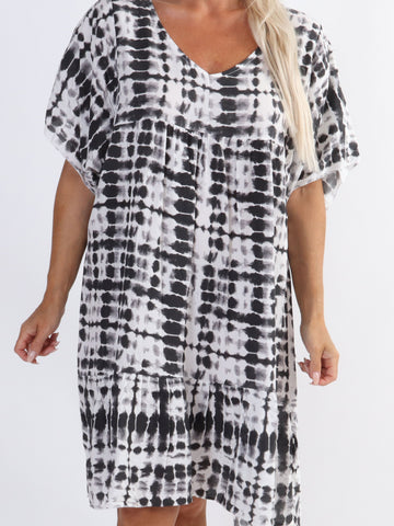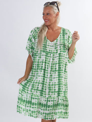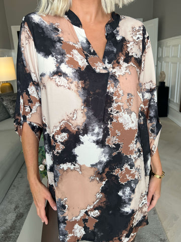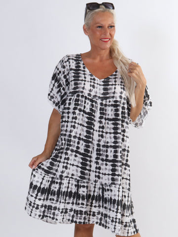 Amanza - Sød plus size tunikakjole i viskose med batikmønster
