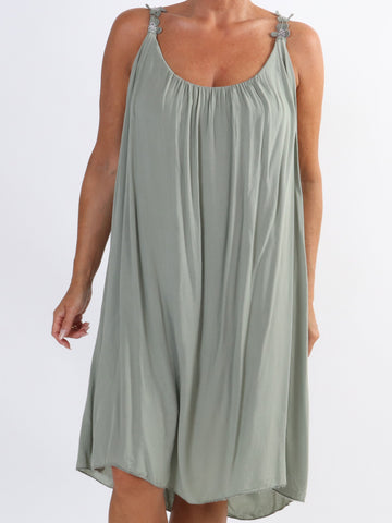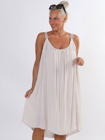 Chrishell - Kort sommerkjole med knapper ved brystet