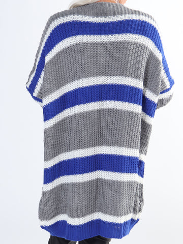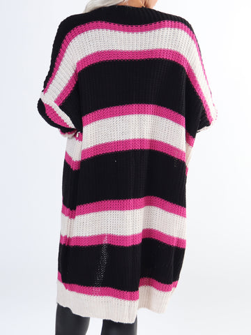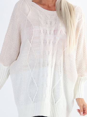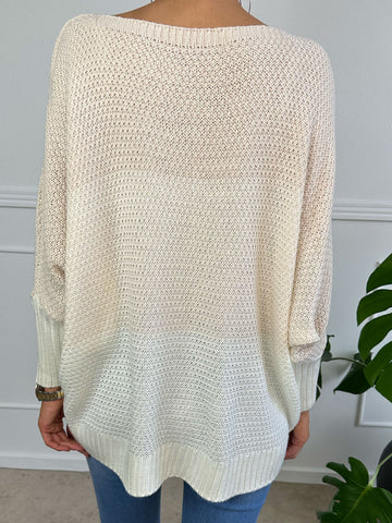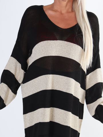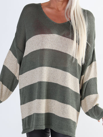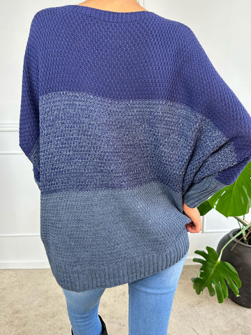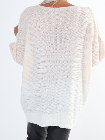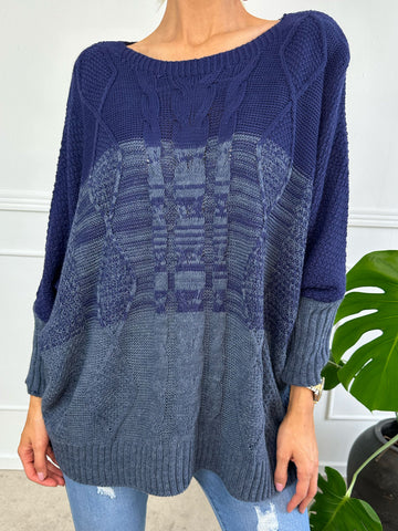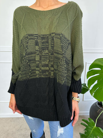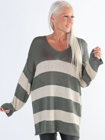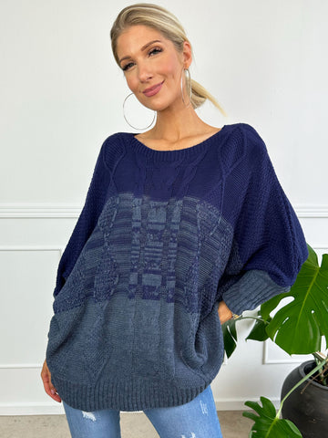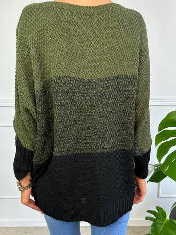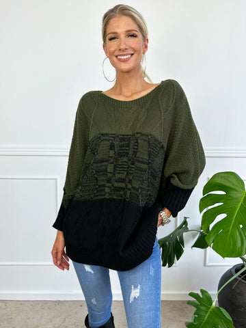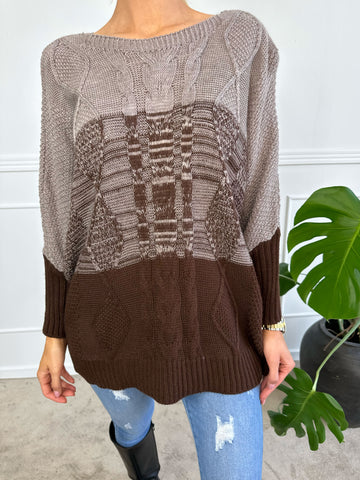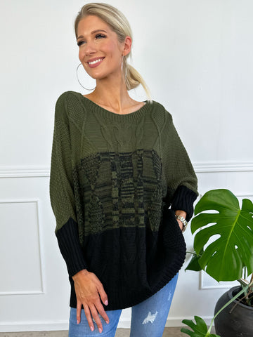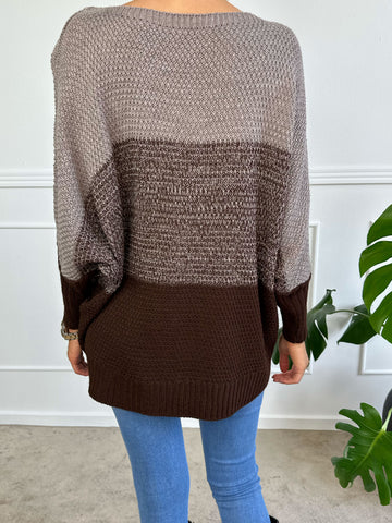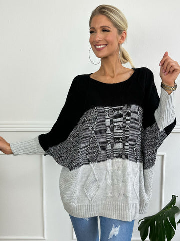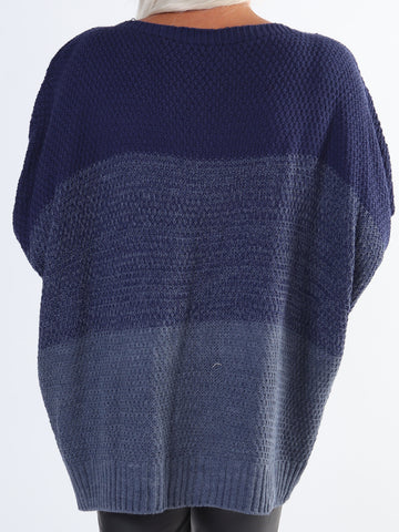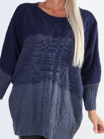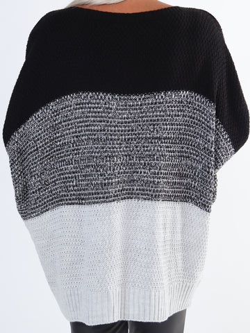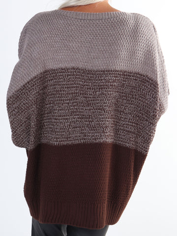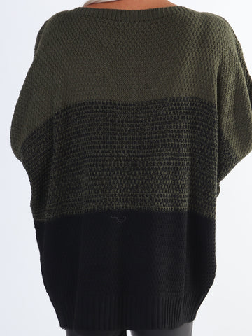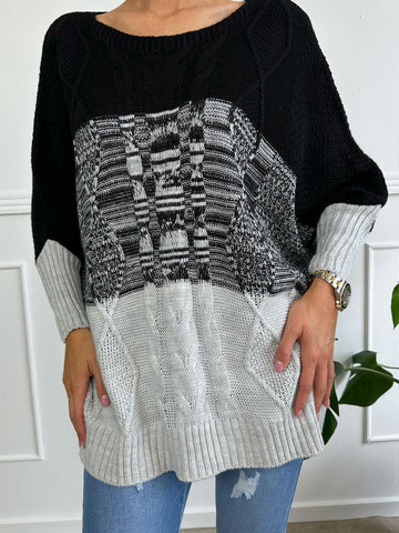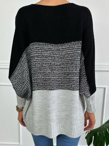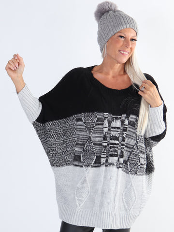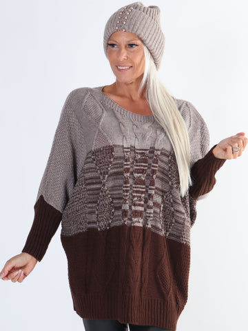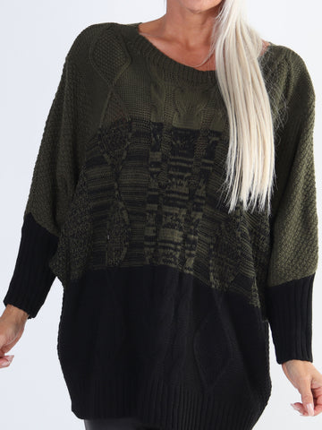 Malika - Flerfarvet plus size strik med flagermusærmer