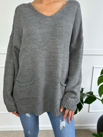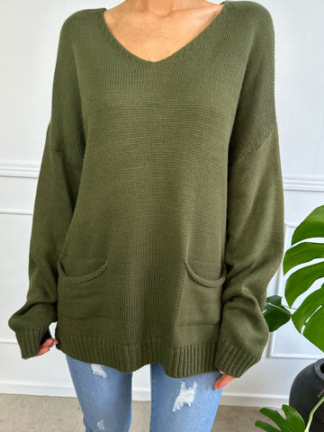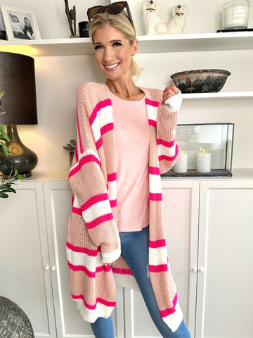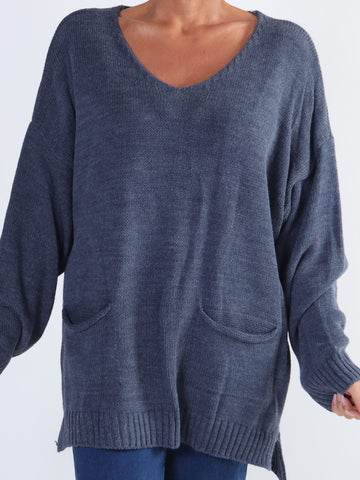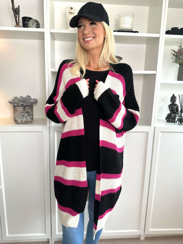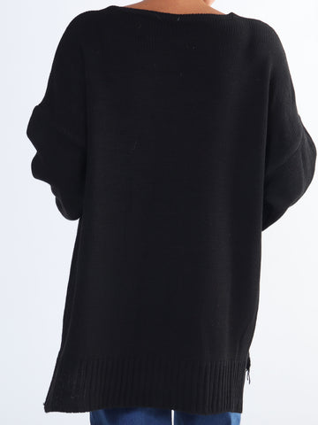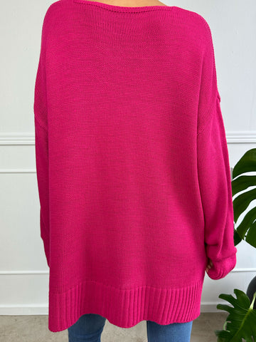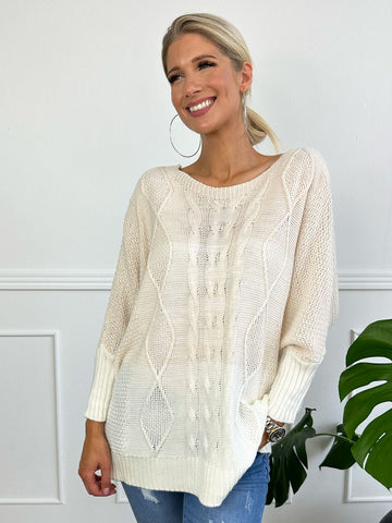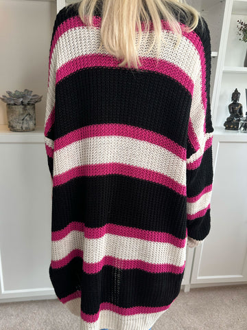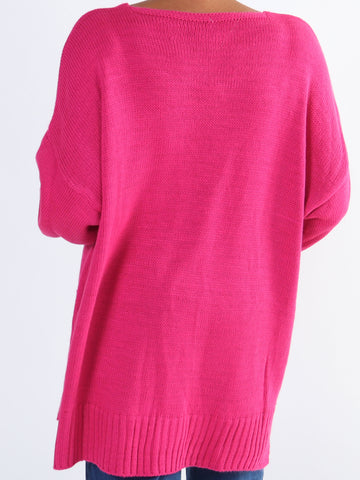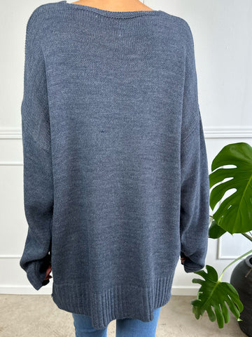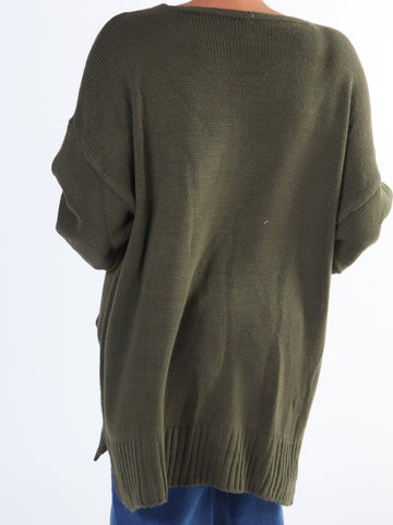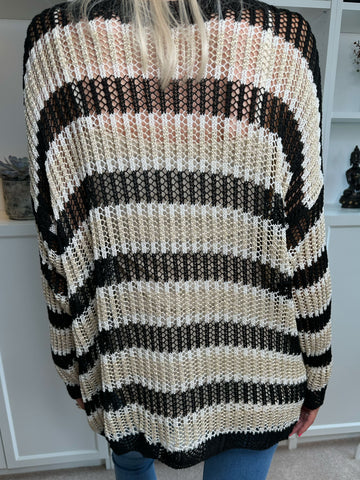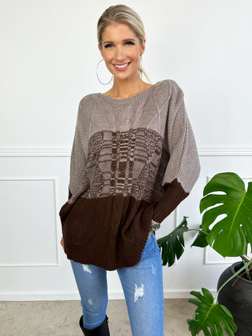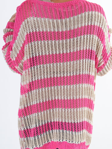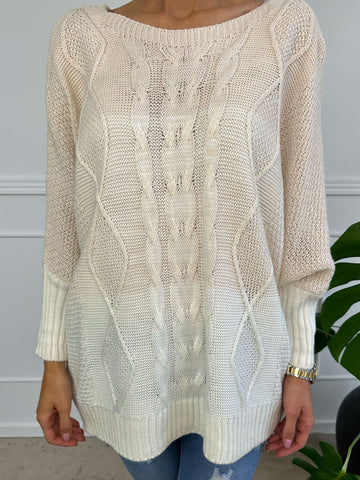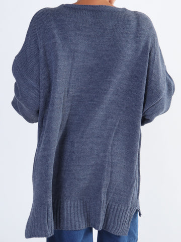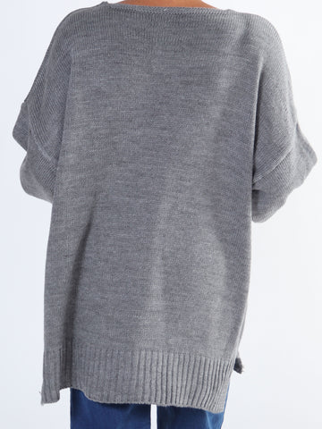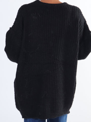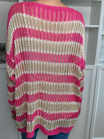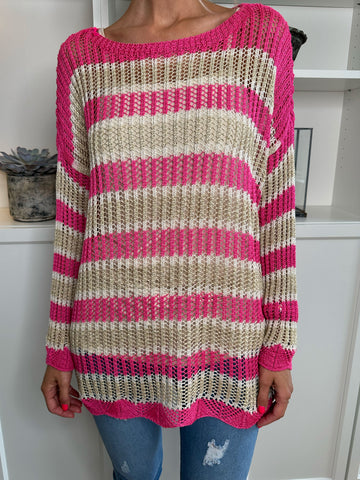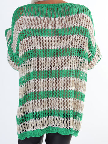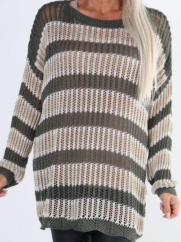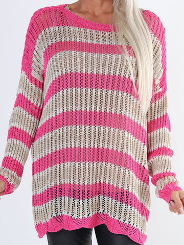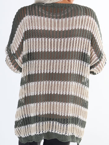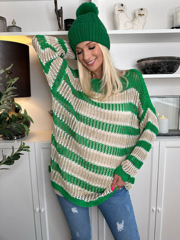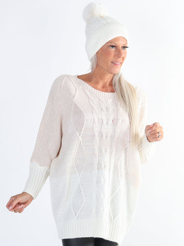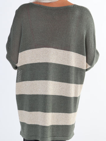 Malika - Flerfarvet plus size strik med flagermusærmer