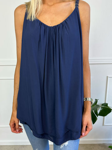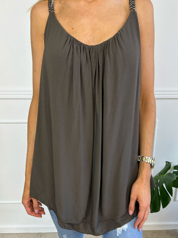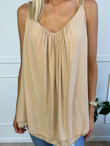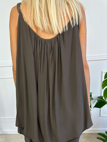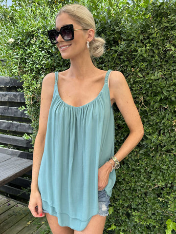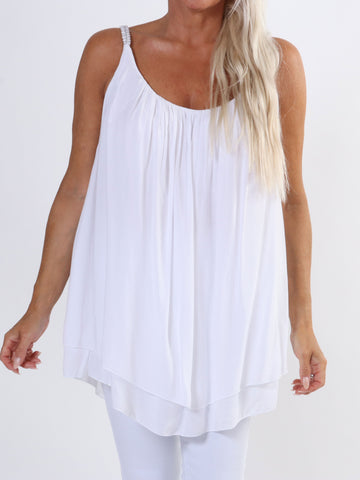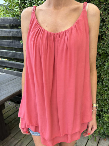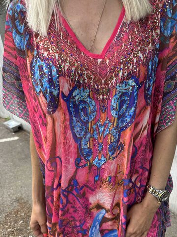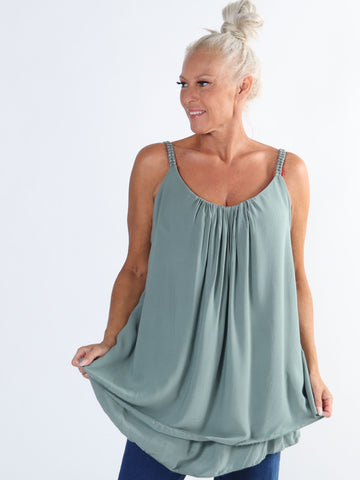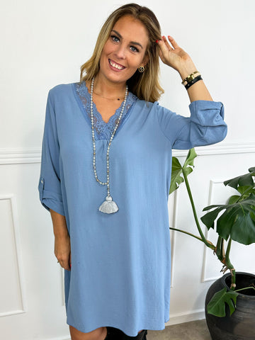 Mellie - Lang farvet semi-transparent tunika med similisten