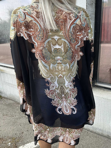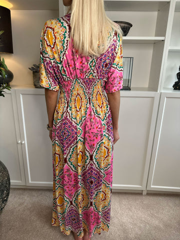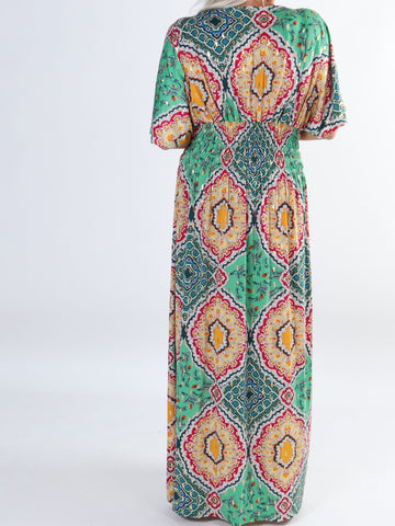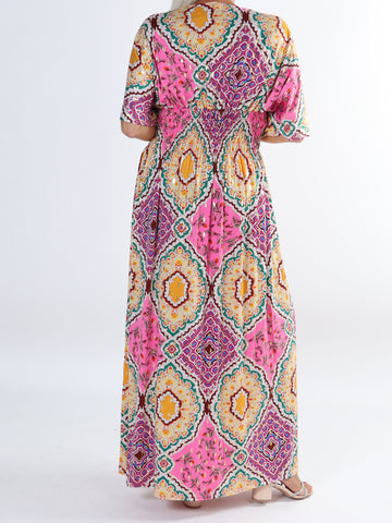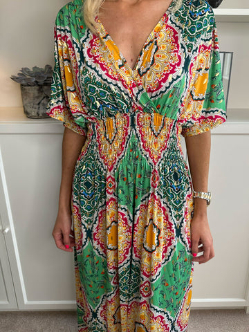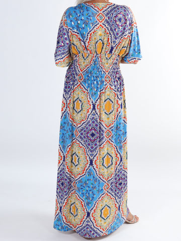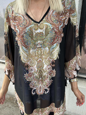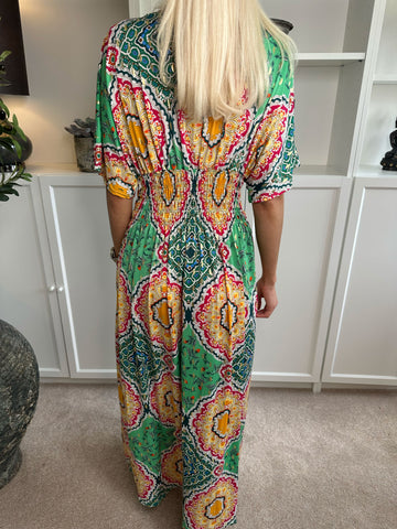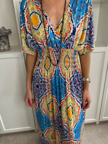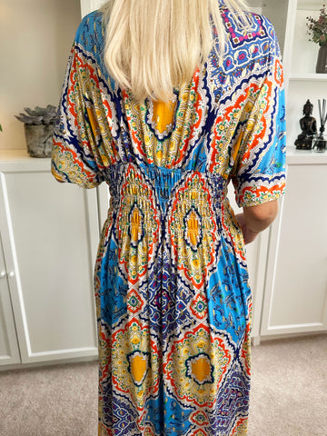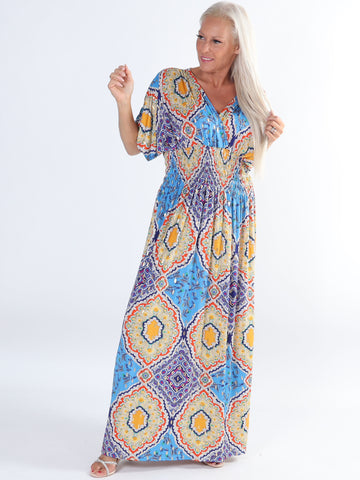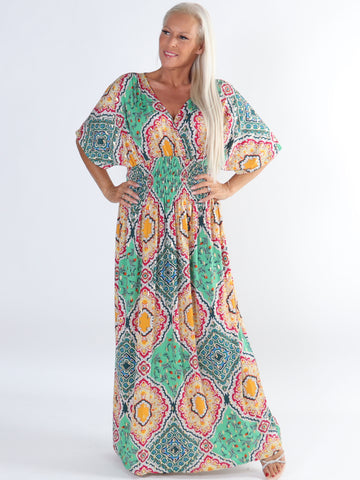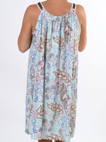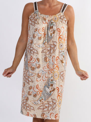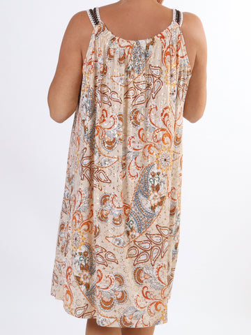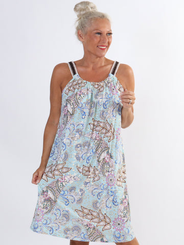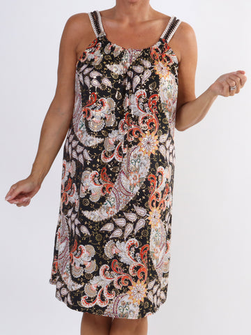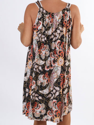 Asta Paisley - Elastisk plus size stropkjole med mønster og guld detaljer