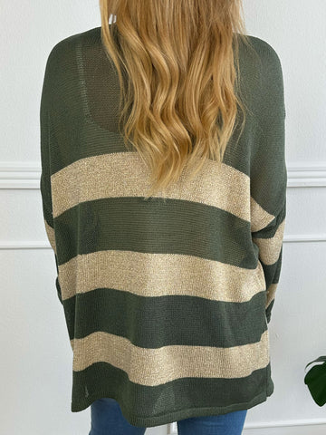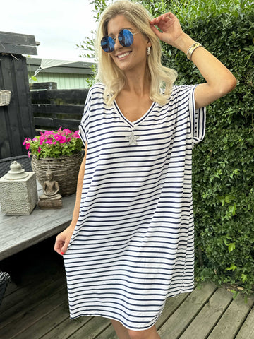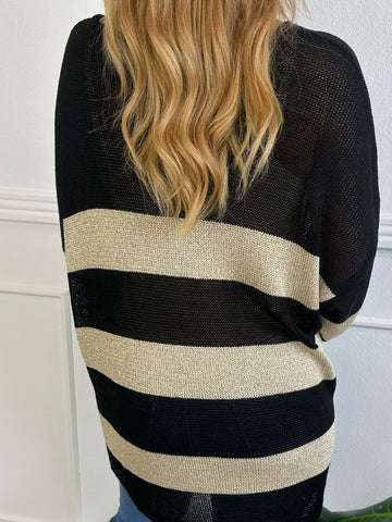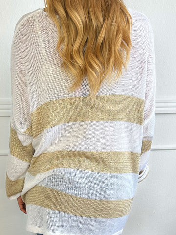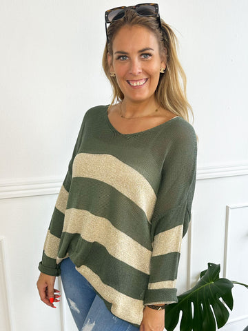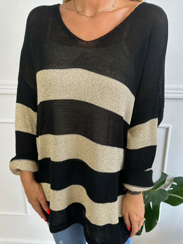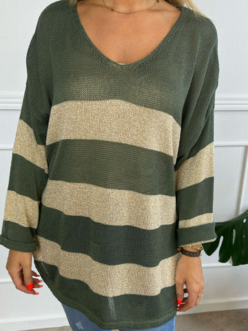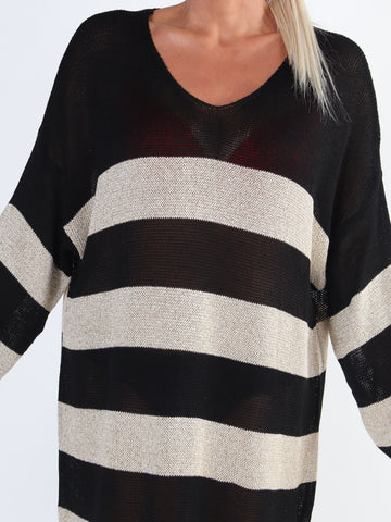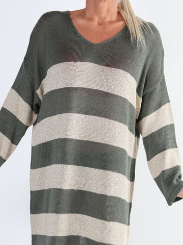 Dima Dress - Strikkjole i viskose med guld striber og v-hals