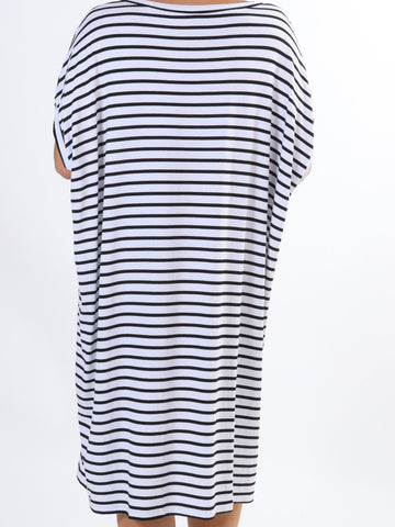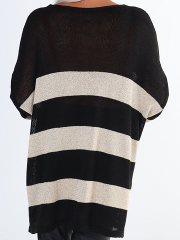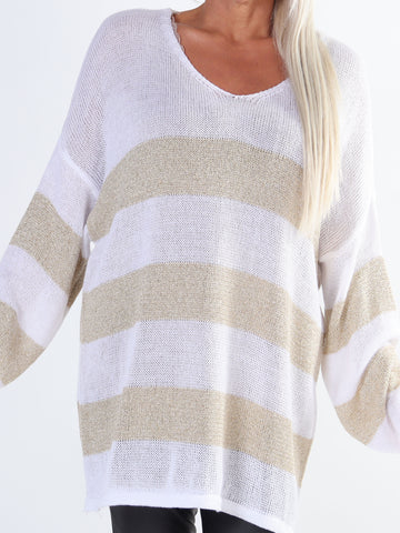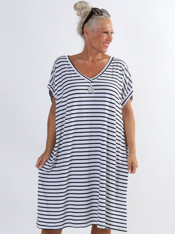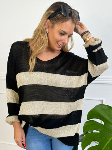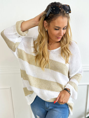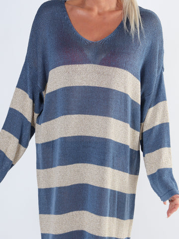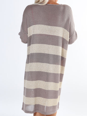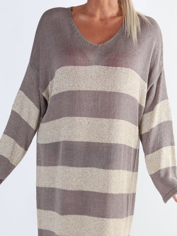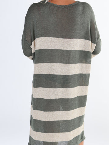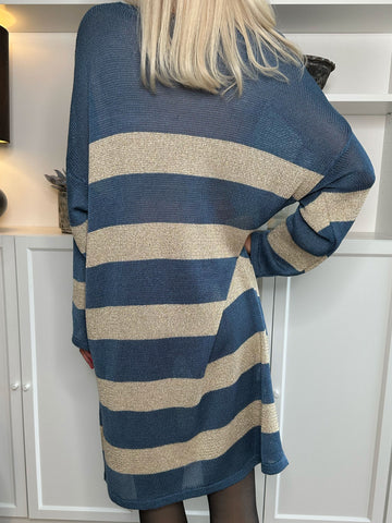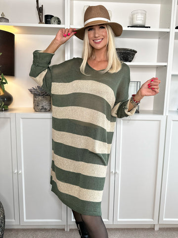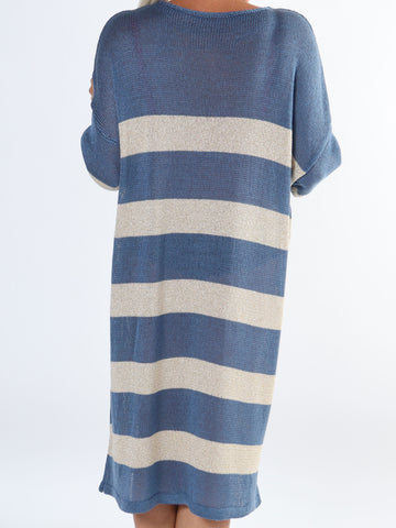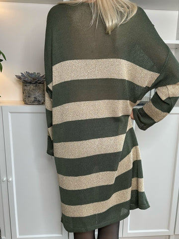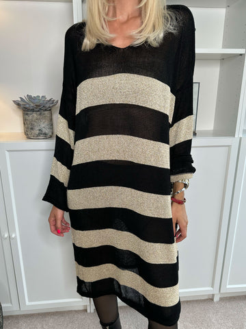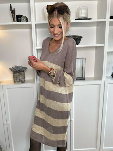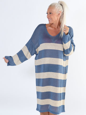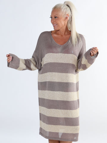 Dima Dress - Plus size strikkjole i viskose med guld striber