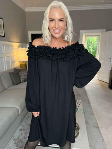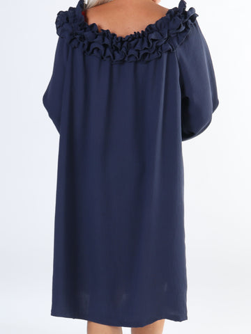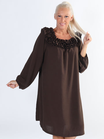 Chili Dress - Plus size kjole med lange ærmer og flæser