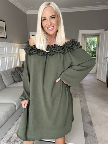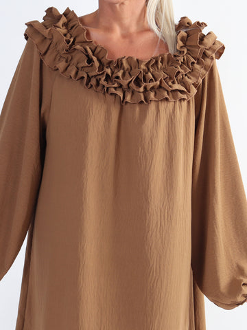 Chili Dress - Kjole med lange ærmer og flæser i udskæringen