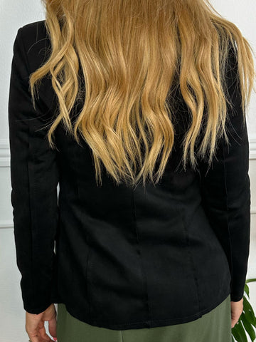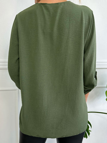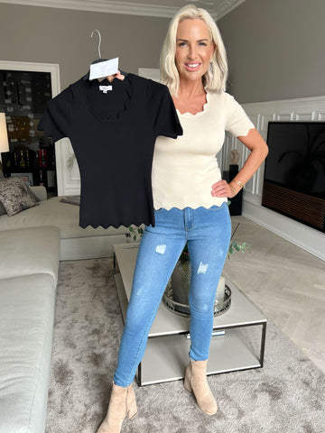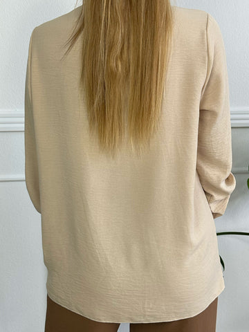 Elvira - Tætsiddende elastisk bluse i viskose med kantet udskæring