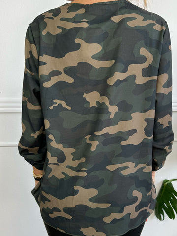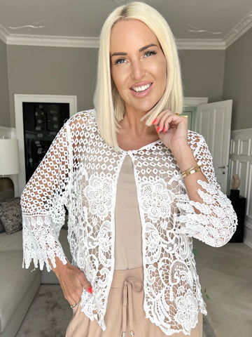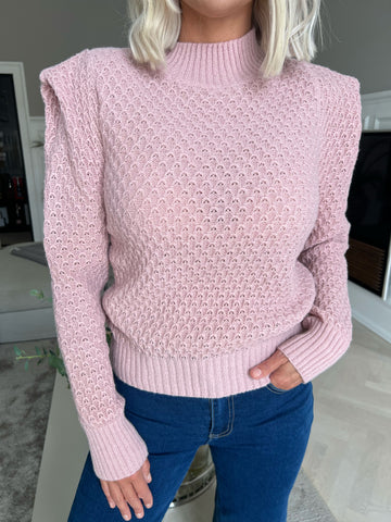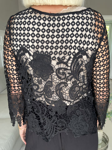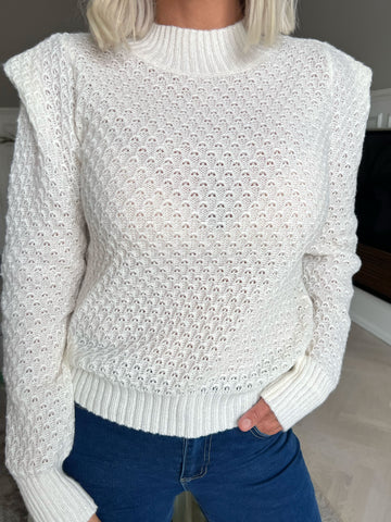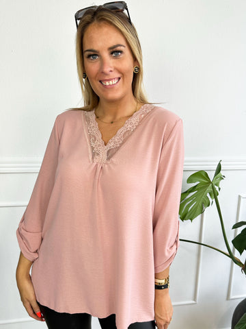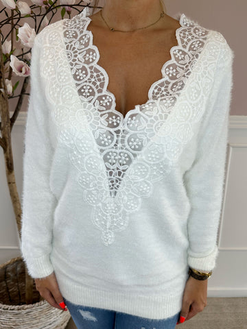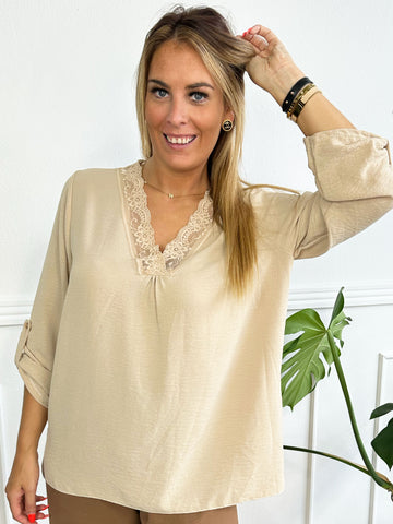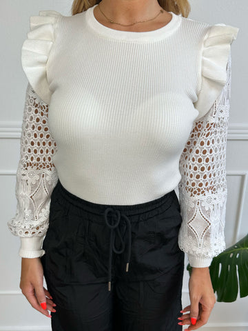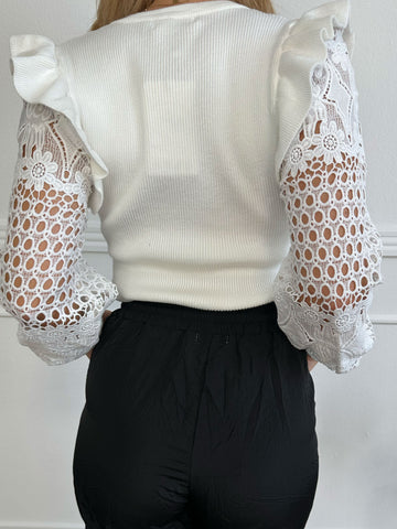Diamond - Strikbluse med broderet ærmer og flæsedetaljer