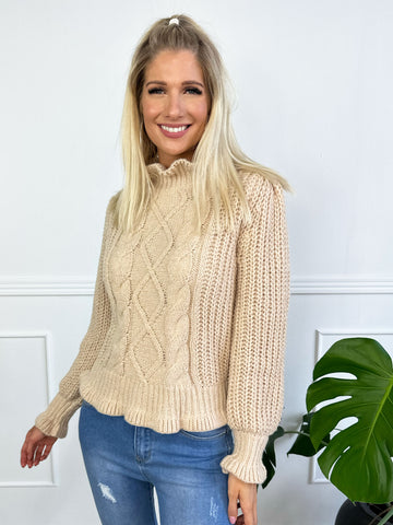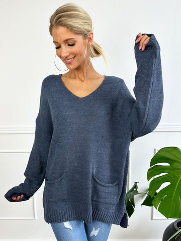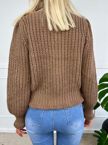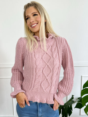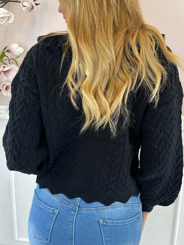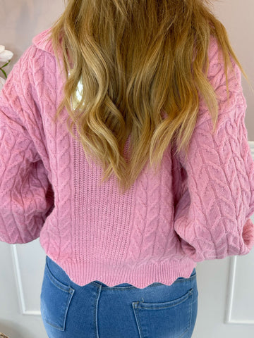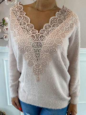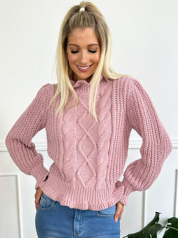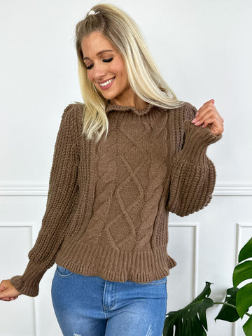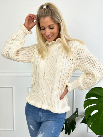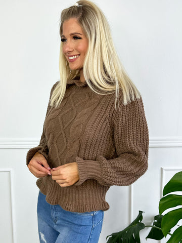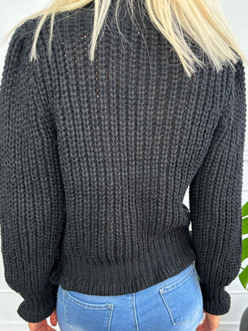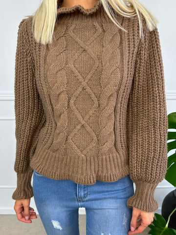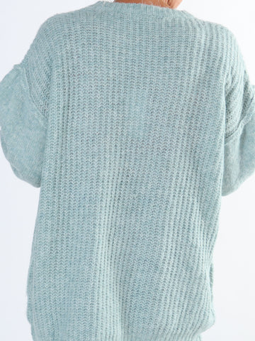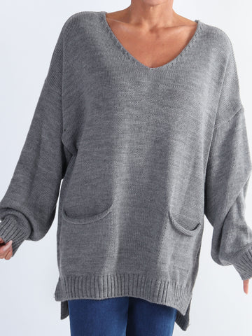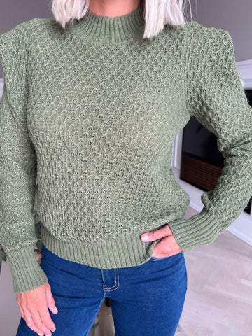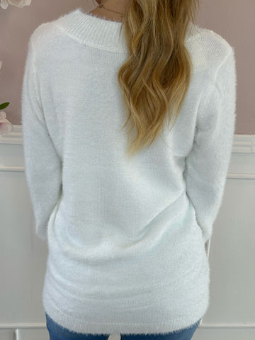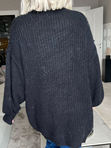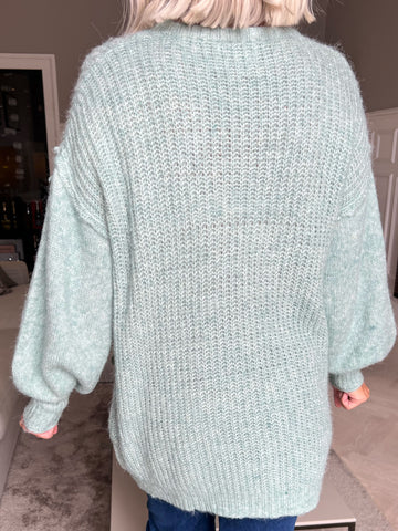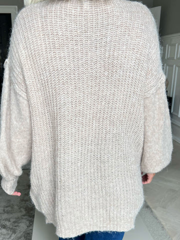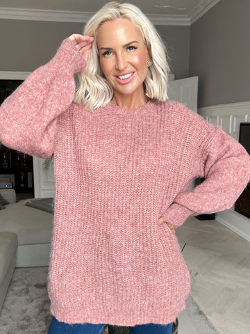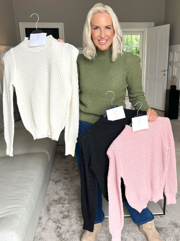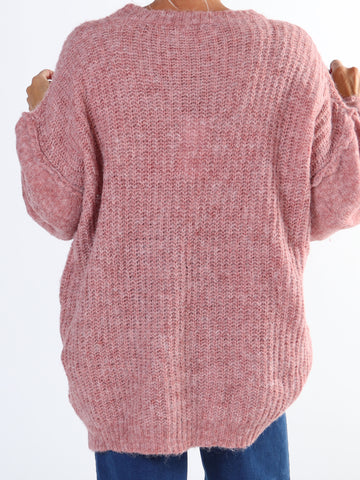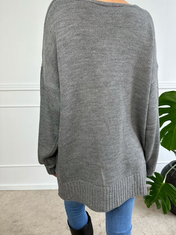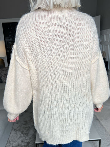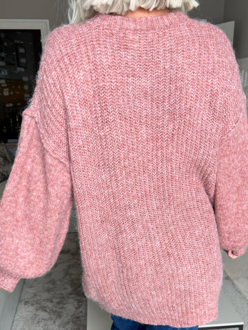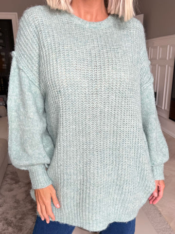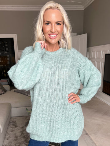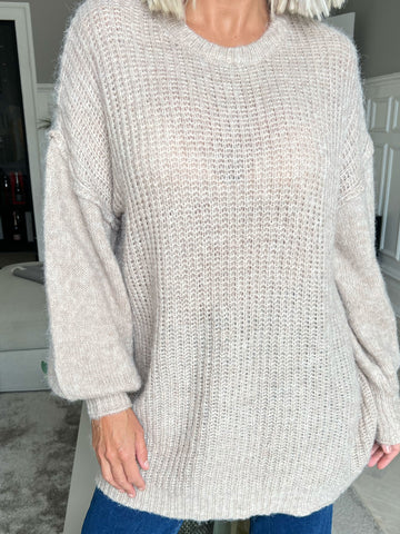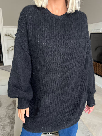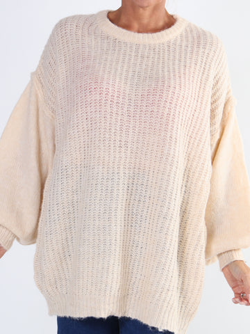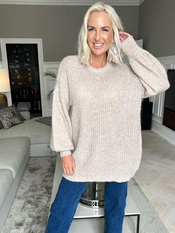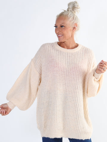 Leana - Lang blød plus size strikbluse med ballonærmer