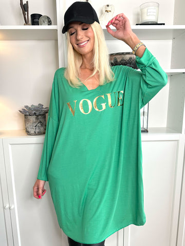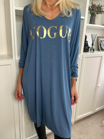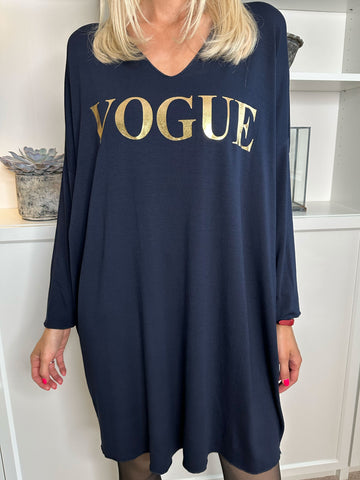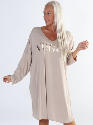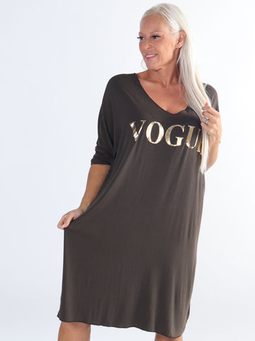 Vogue Long Sleeve - Langærmet plus size kjole i viskose med guld skrift