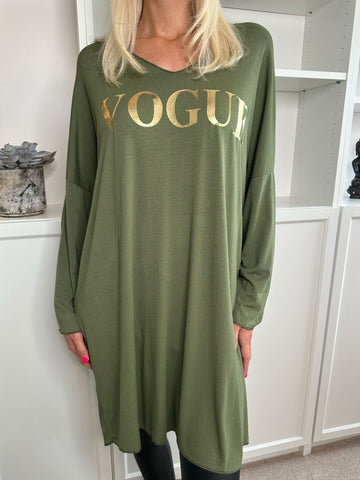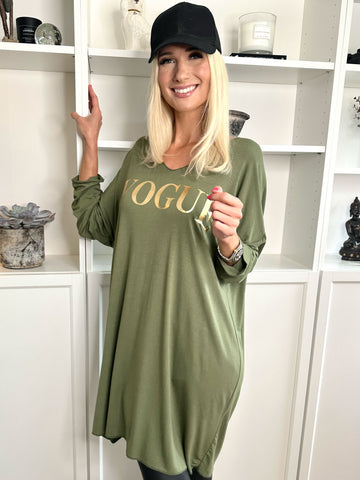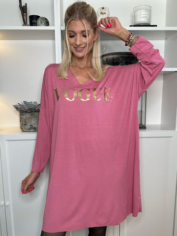 Vogue Long Sleeve - Langærmet kjole i viskose med guld skrift