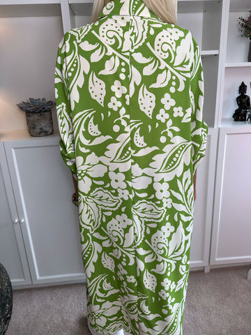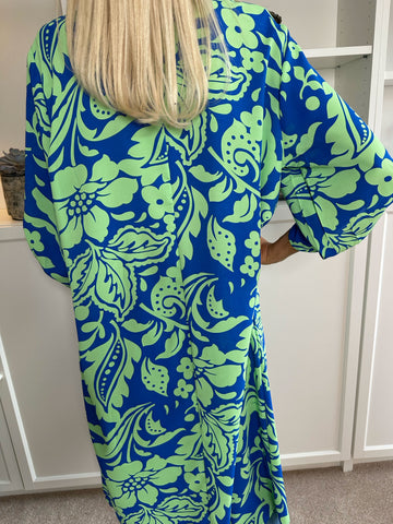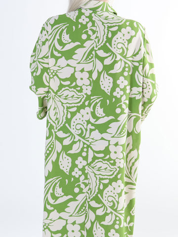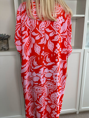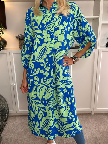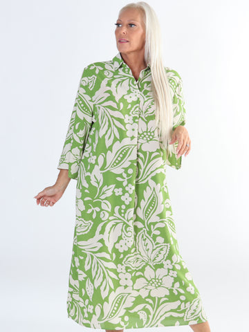 Amal - Lang plus size kjole i bomuld med tryk foran