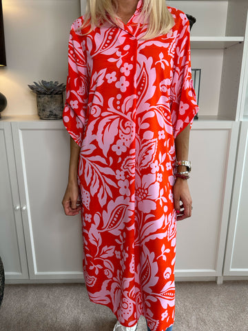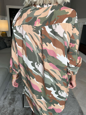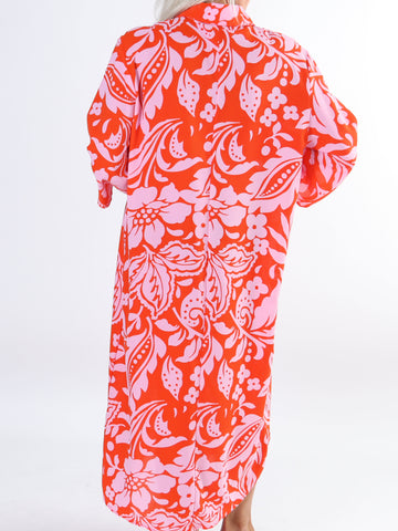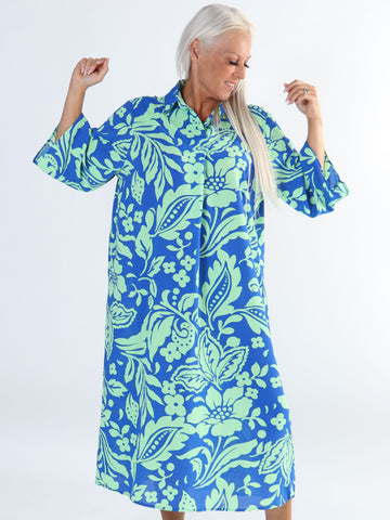 Sanne - Flerfarvet plus size mønstret skjortekjole
