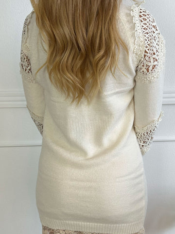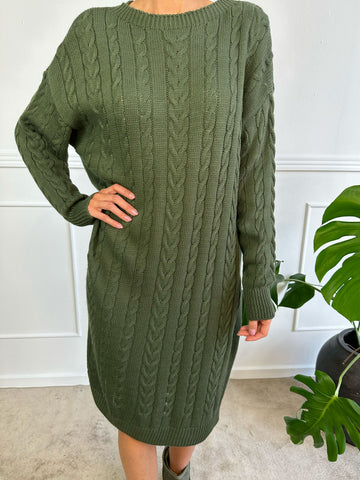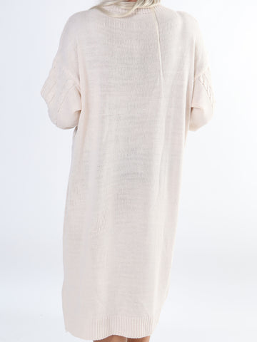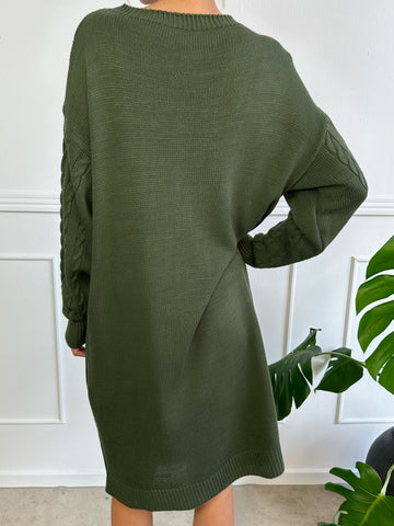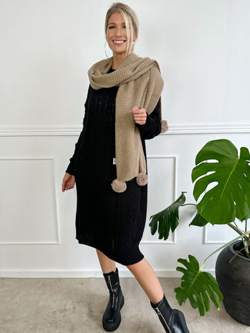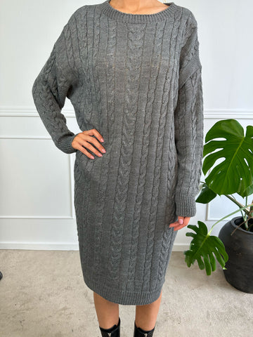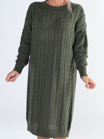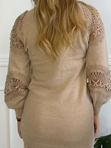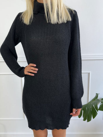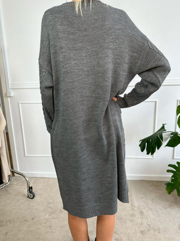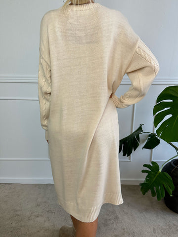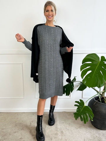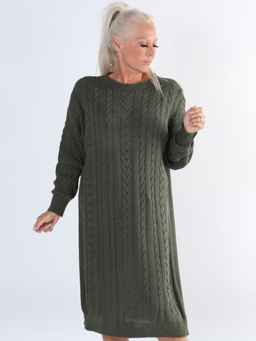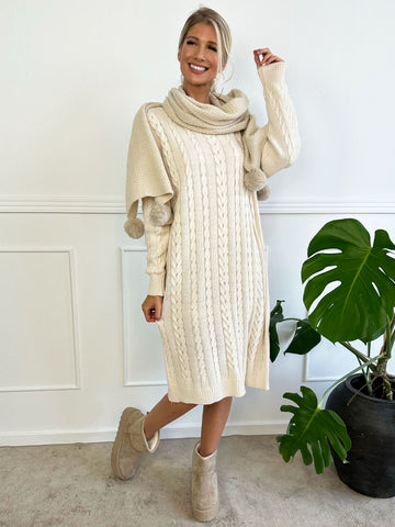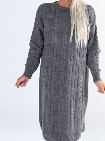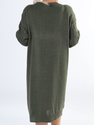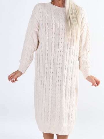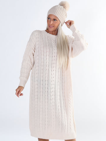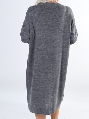 Oxana - Blød strikkjole med broderinger henover bryst og ærmer