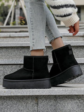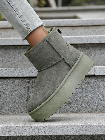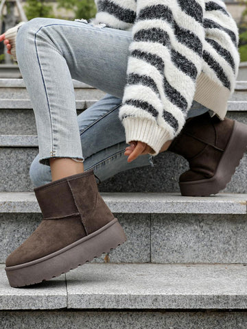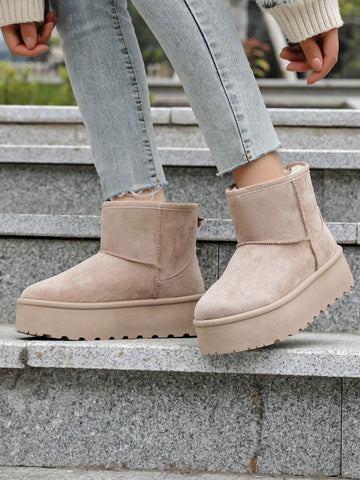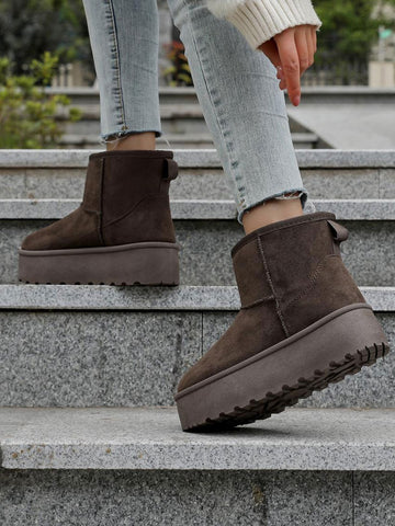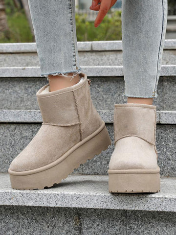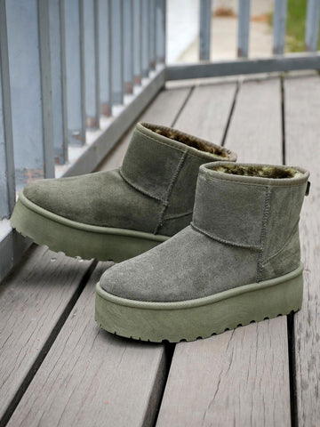 Jovana - Bamsestøvler i ruskindslook med plateausål
