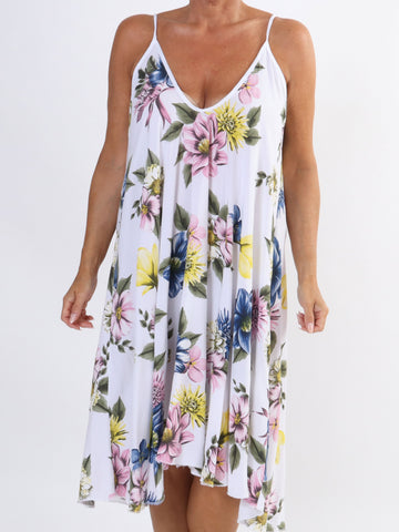 Maddie Flower - Sød plus size stropkjole med blomstermotiver