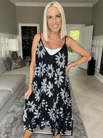 Maddie Sunflower - Sød plus size stropkjole med blomstermotiver