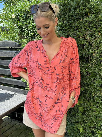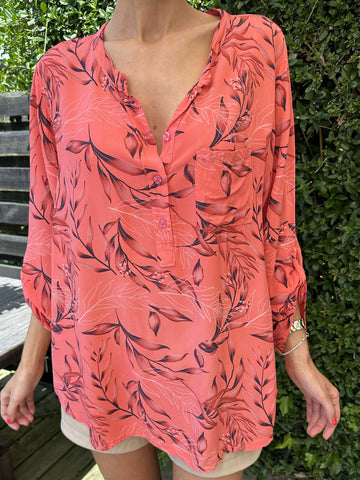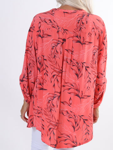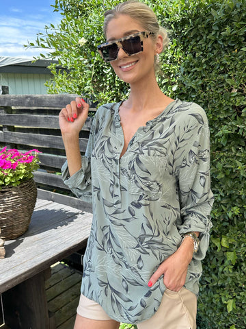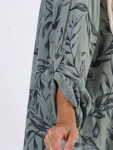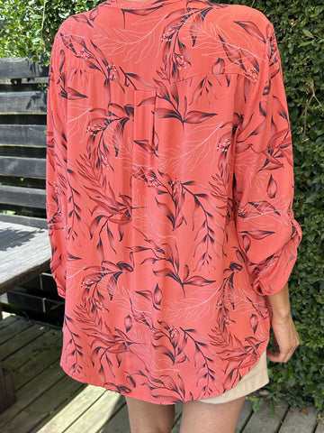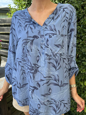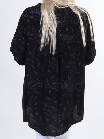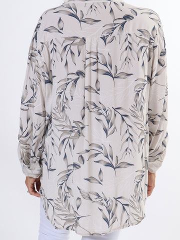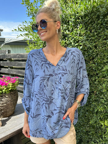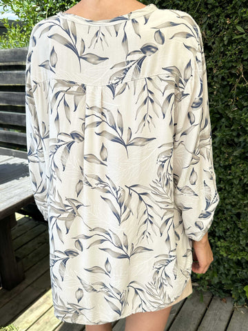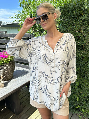 Sne - Fin plus size skjorte i bomuld med blad motiver
