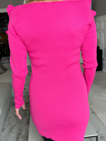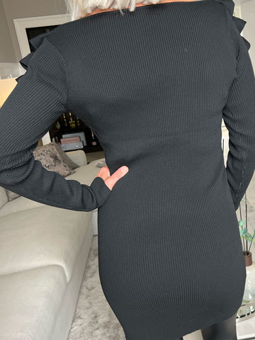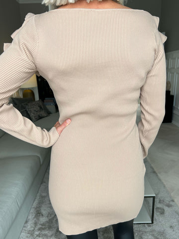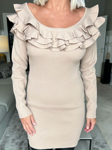 Julie - Sød tætsiddende kjole med flæser i udskæringen