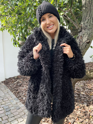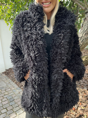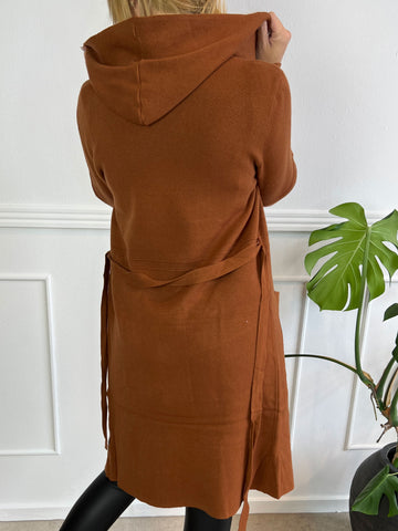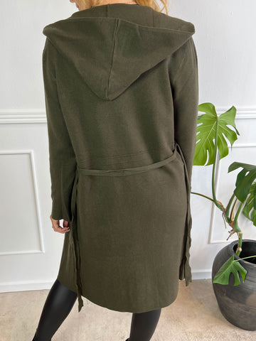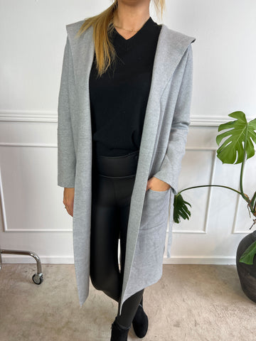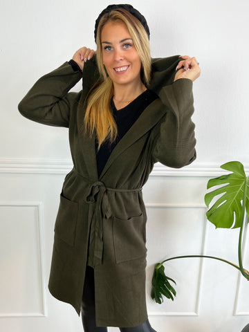 Nina - Dejlig blød cardigan med hætte og bindebånd