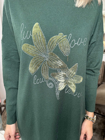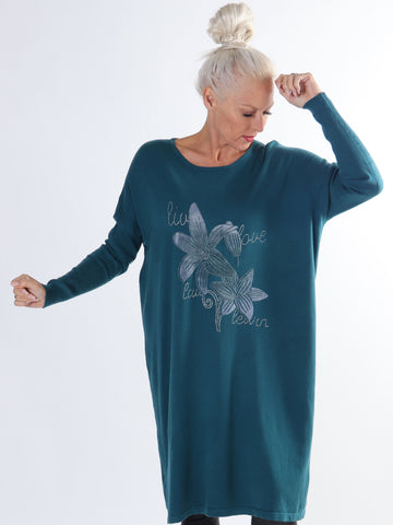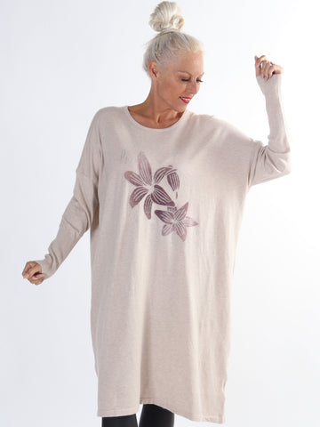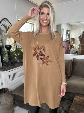 Amilie - Blød plus size strikkjole med blomstermotiver