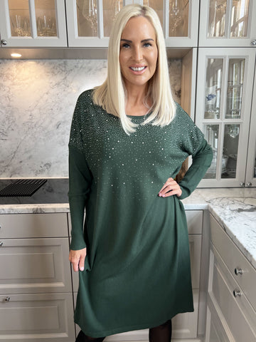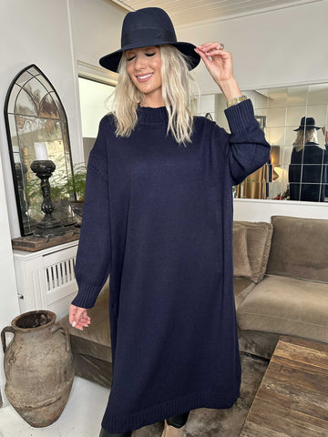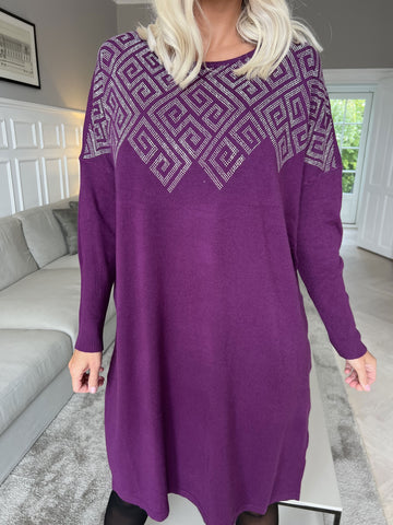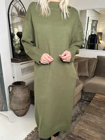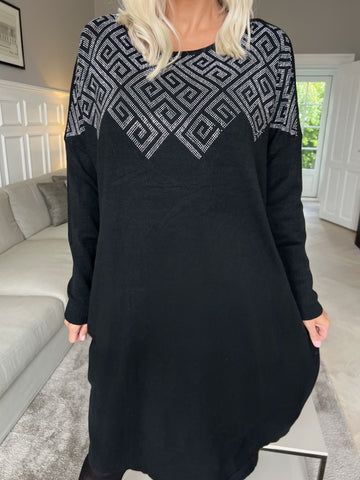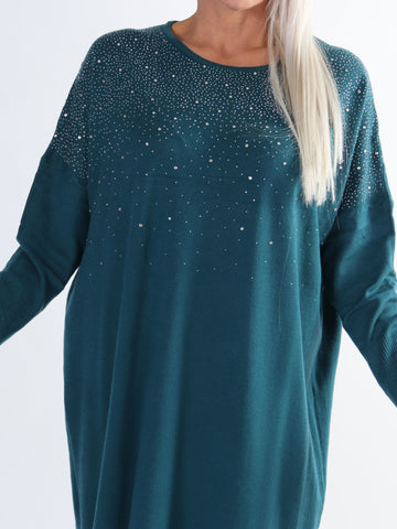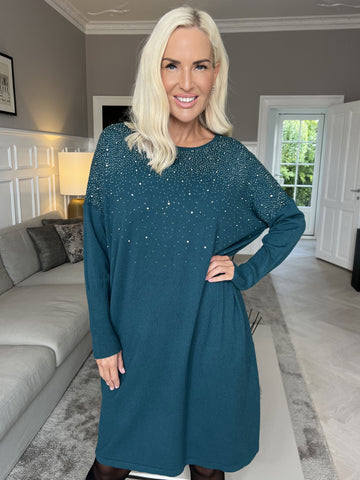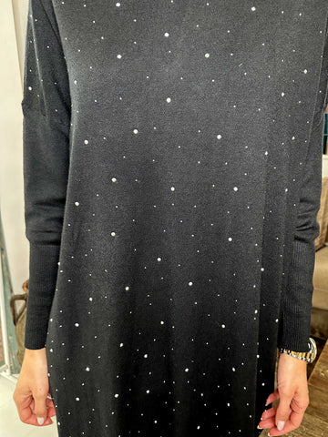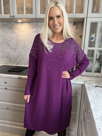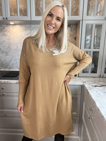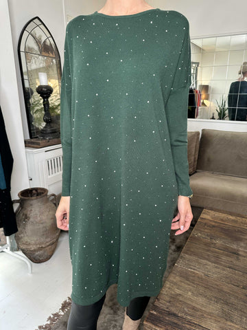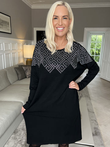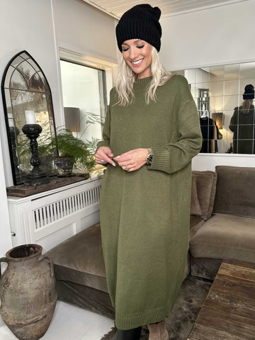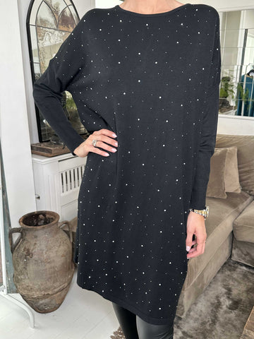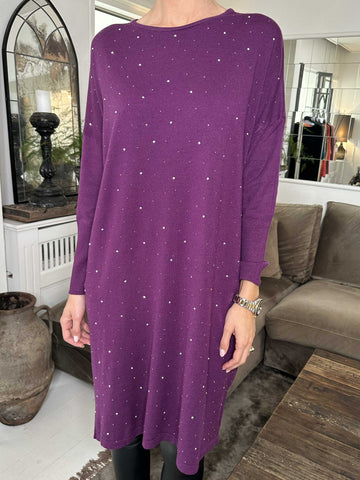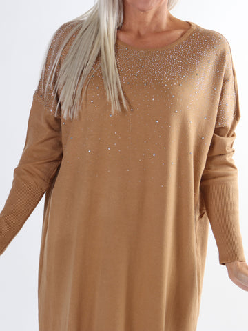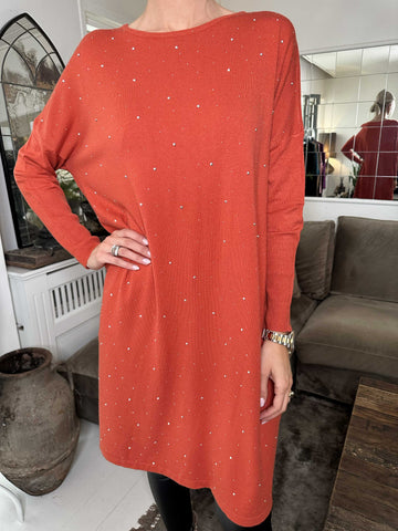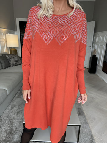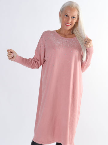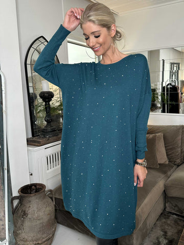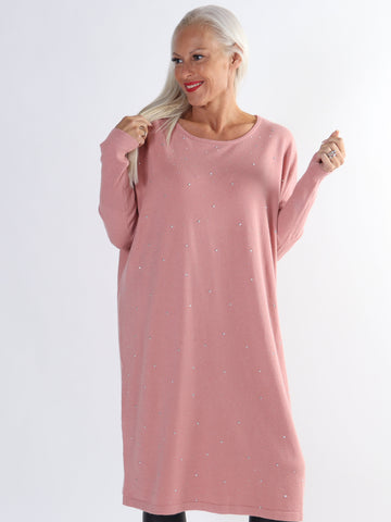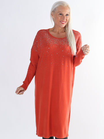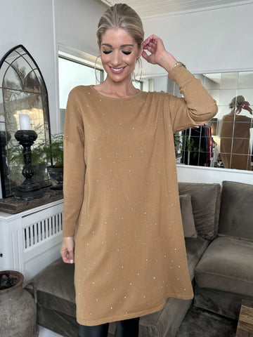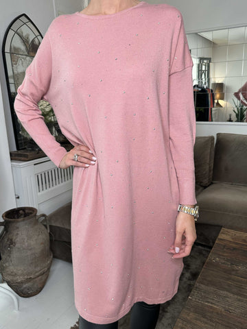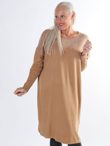 Elisa - Blød plus size strikkjole pyntet med små sten
