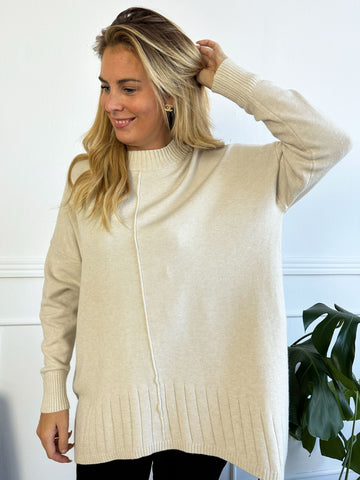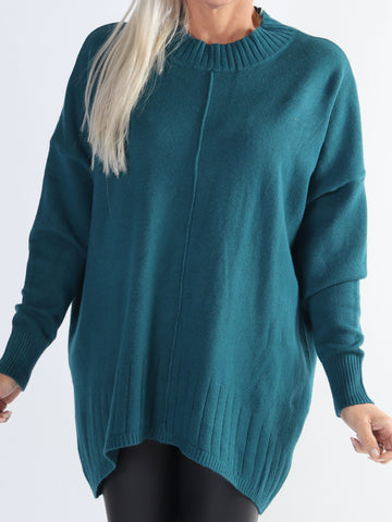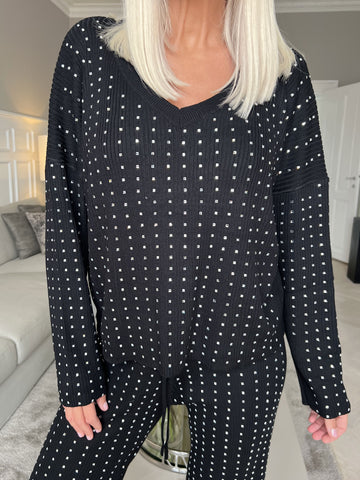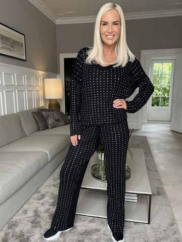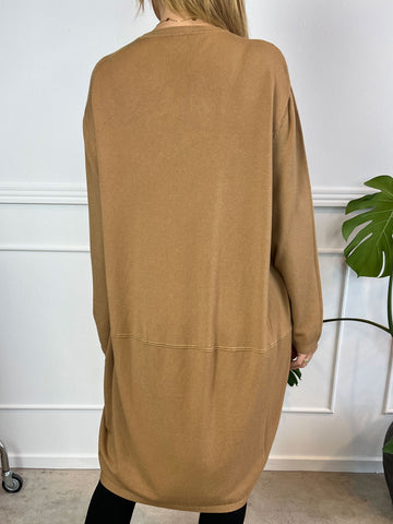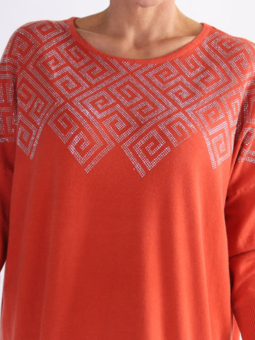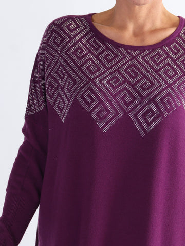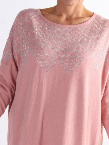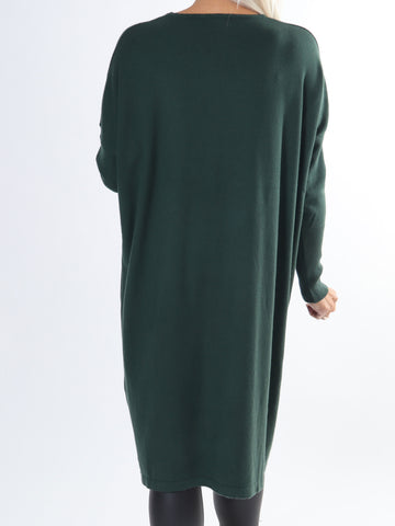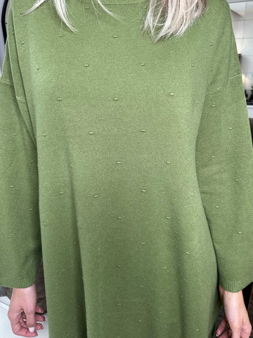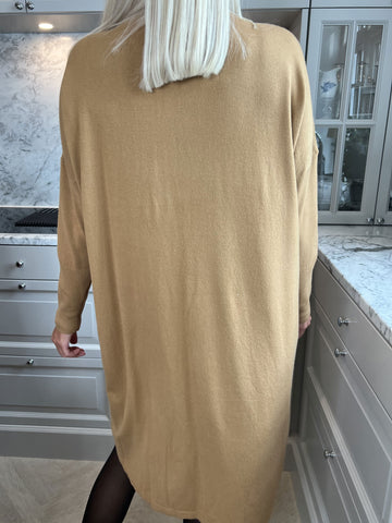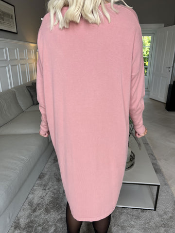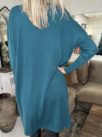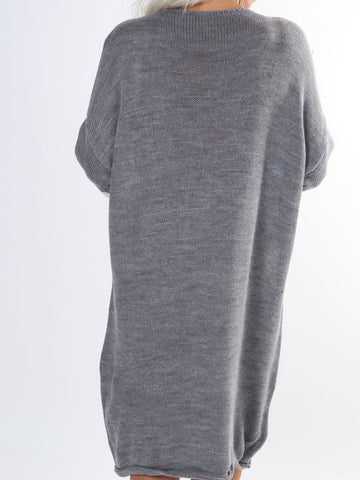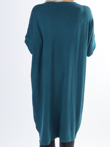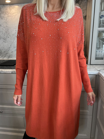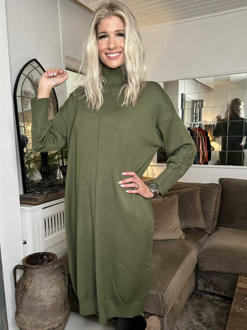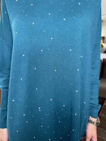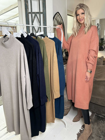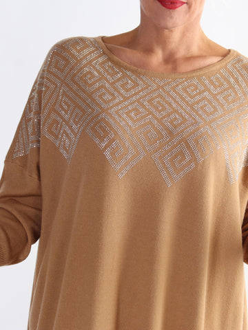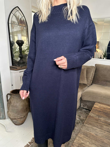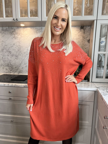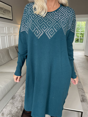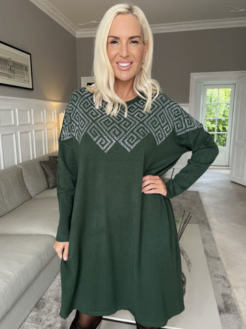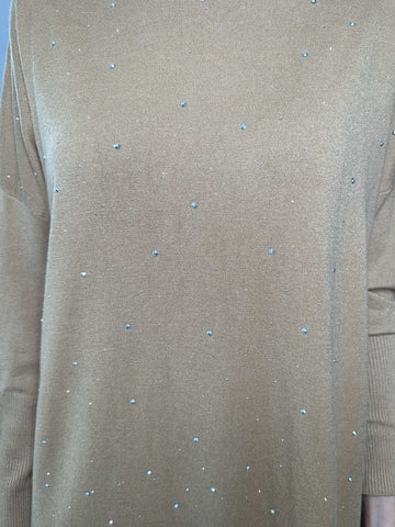 Elisa - Blød plus size strikkjole pyntet med små sten