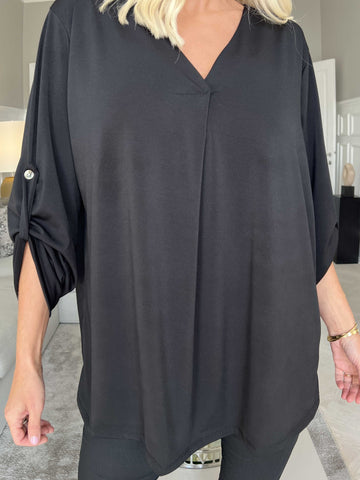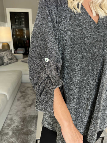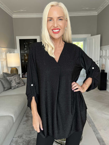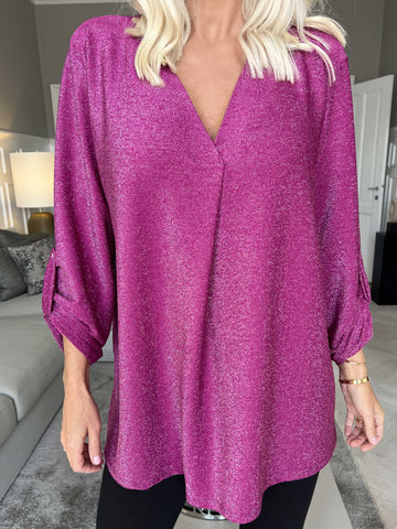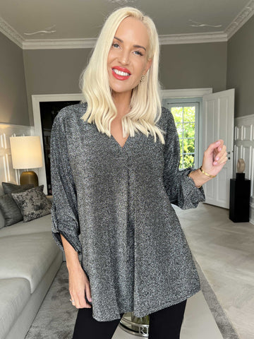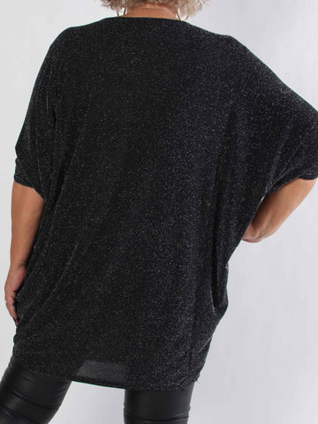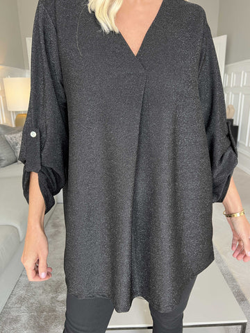Larna Glitter - Plus size tunika med glimmertråde og v-udskæring