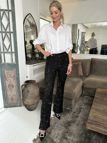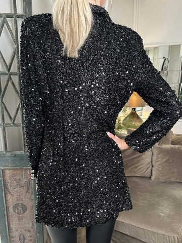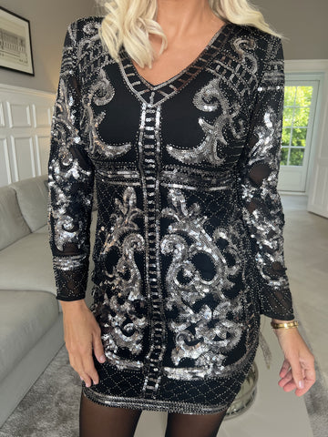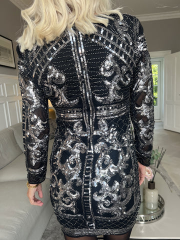 Belicia - Sort tætsiddende kjole med sølv pailletter