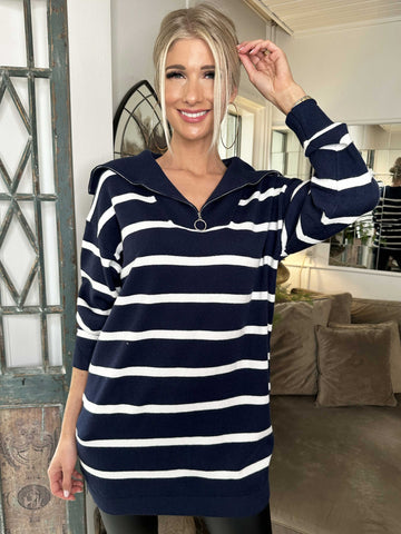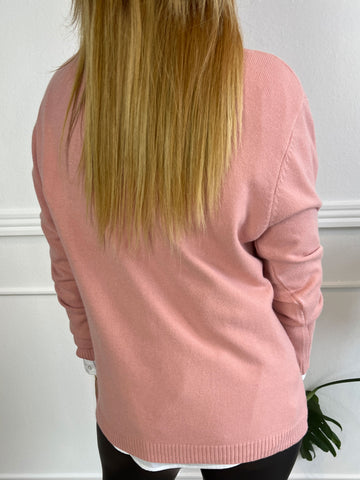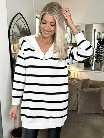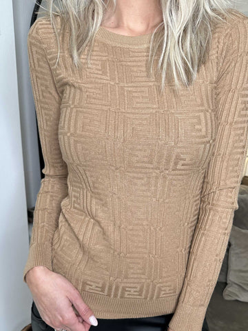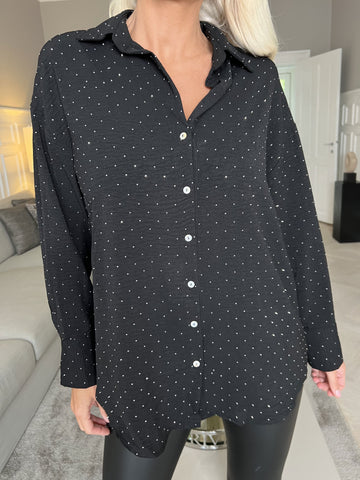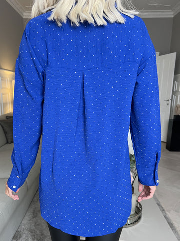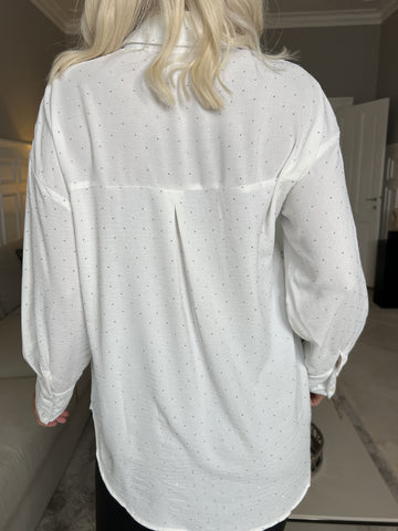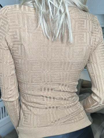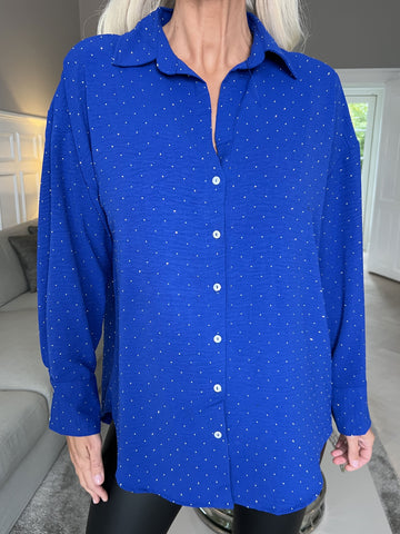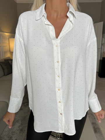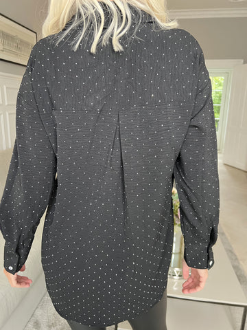 Zina - Plus size strikbluse med prikket detaljer i stoffet