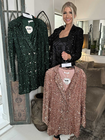 Sofia - Smuk pailletkjole med mesh i udskæringen