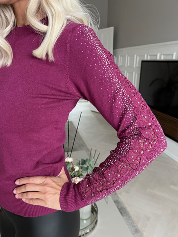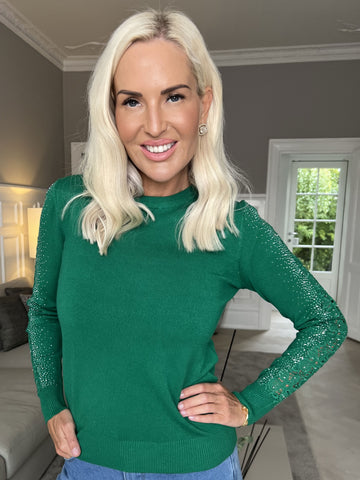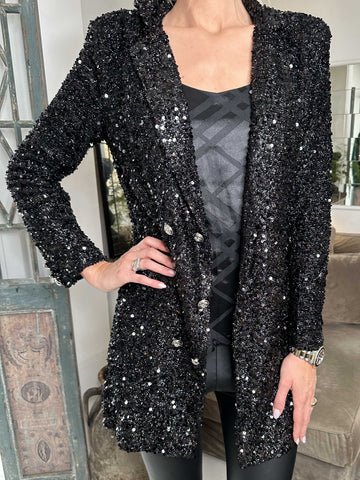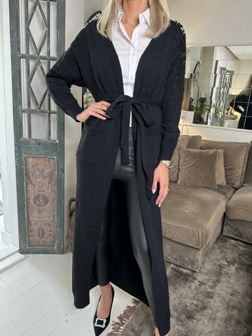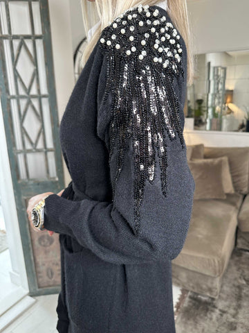 Laila Cardigan - Strikcardigan med pailletter og perler på skuldrene