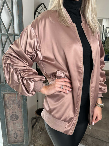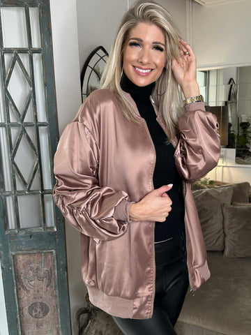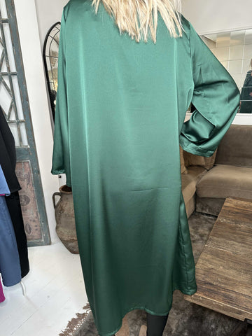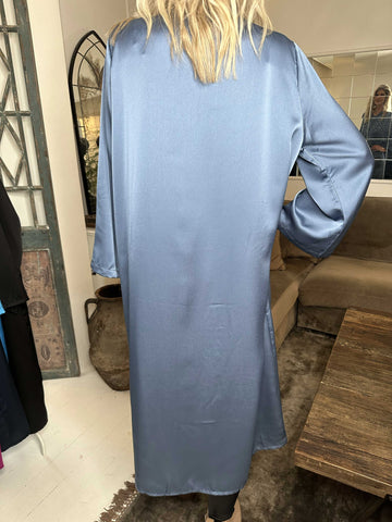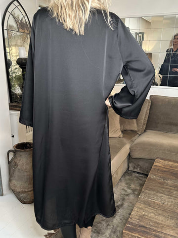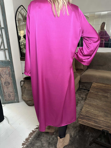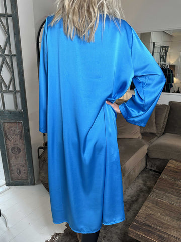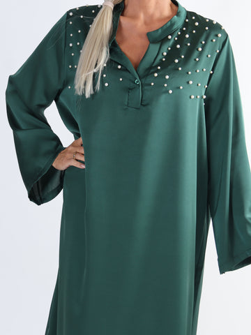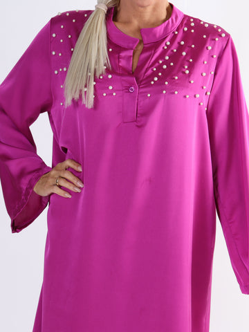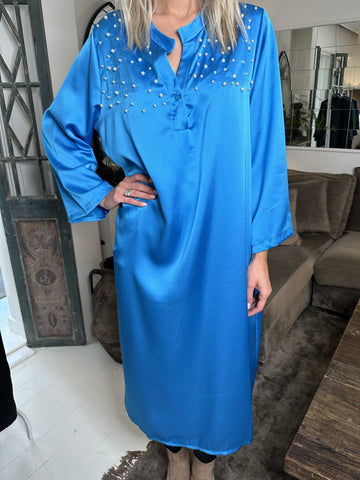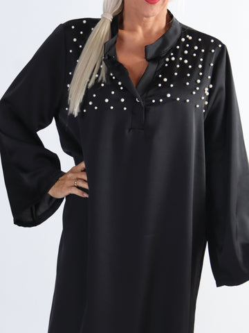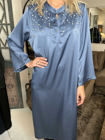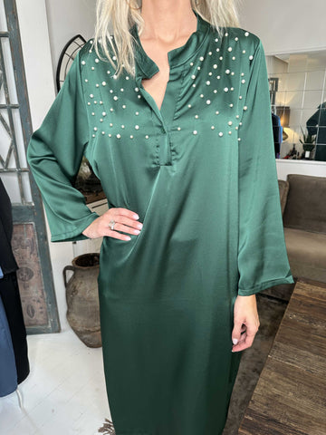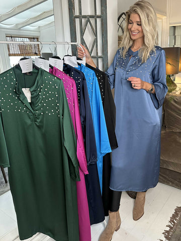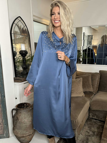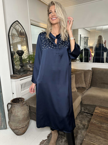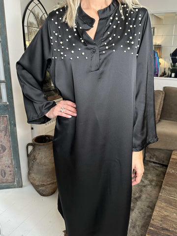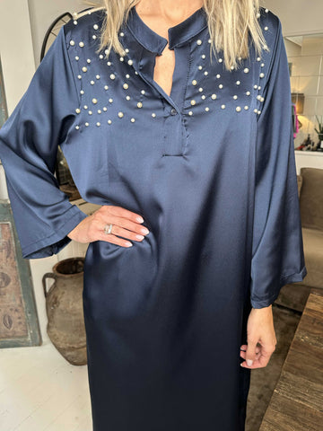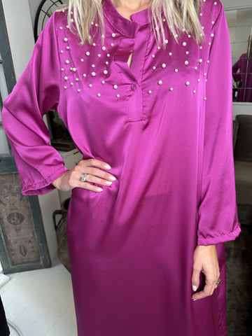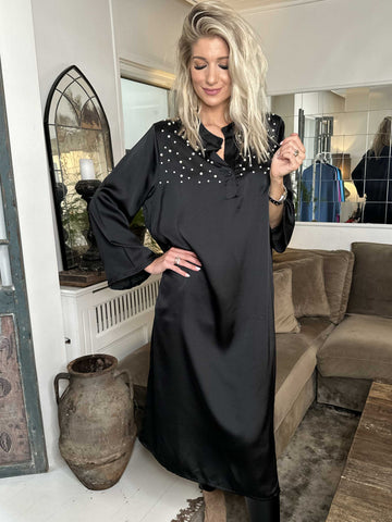 Emilia - Kjole i silkelook med løs pasform og hvide perler