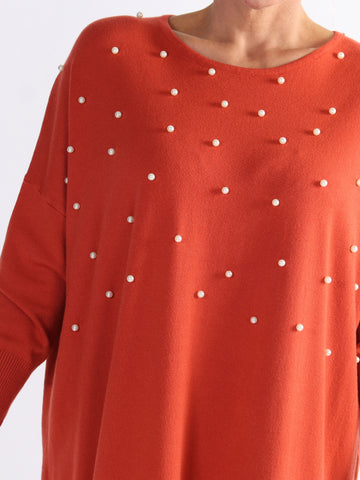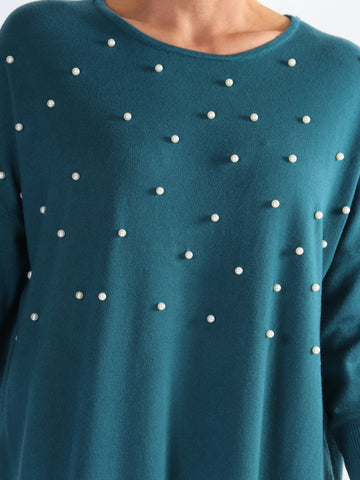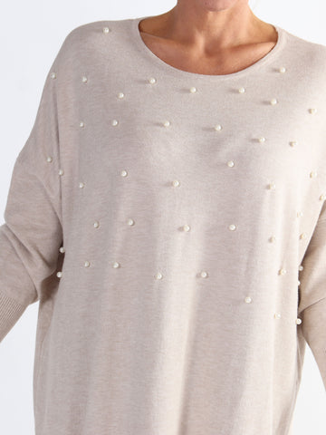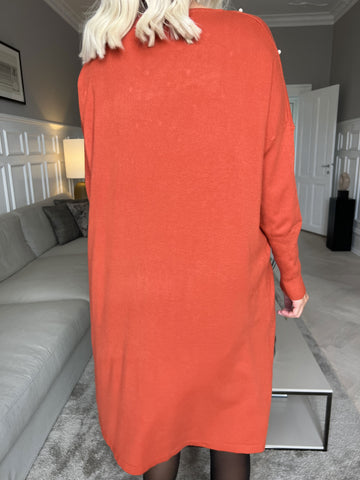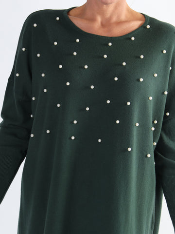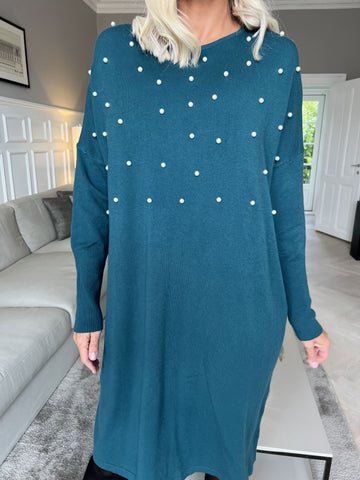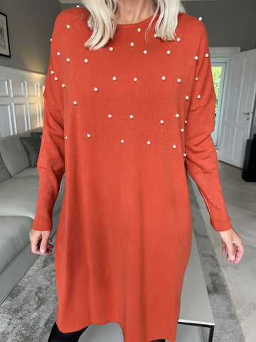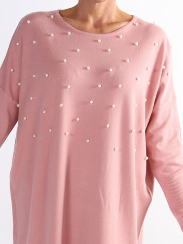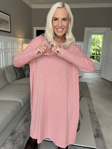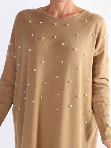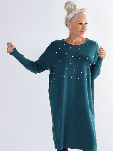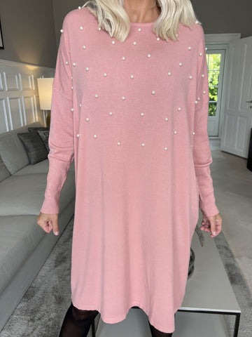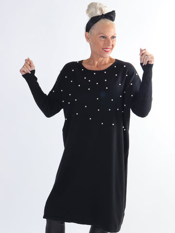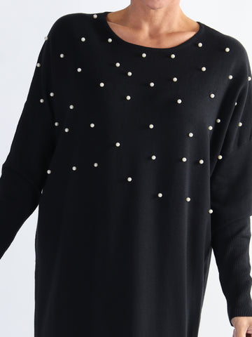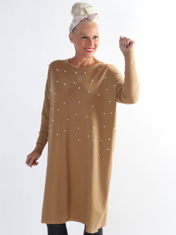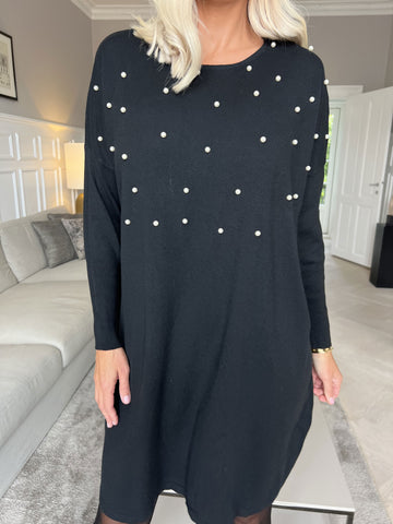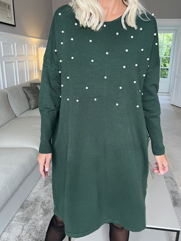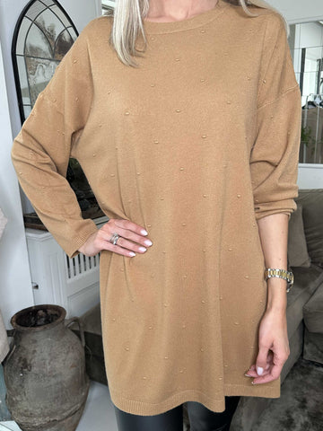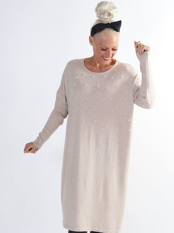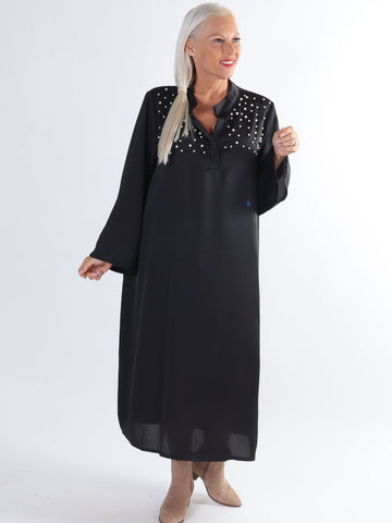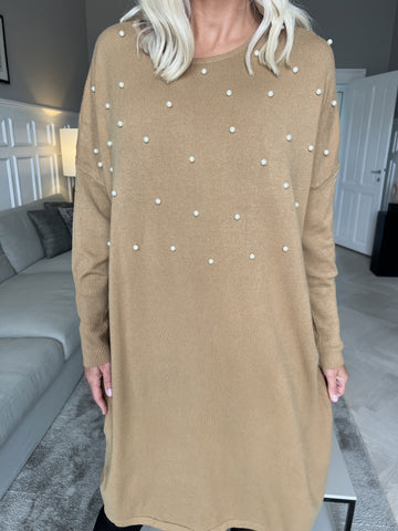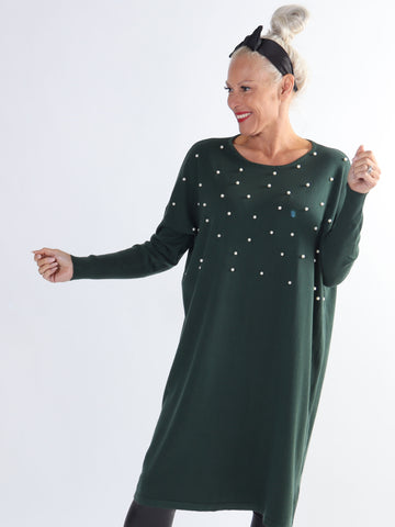Stefania - Behagelig plus size strikkjole pyntet med perler