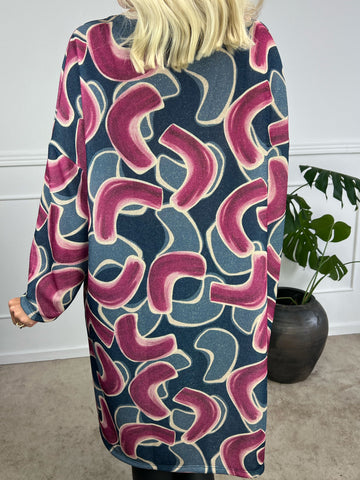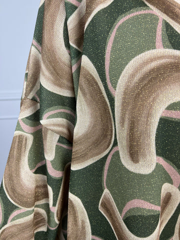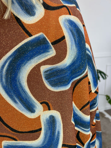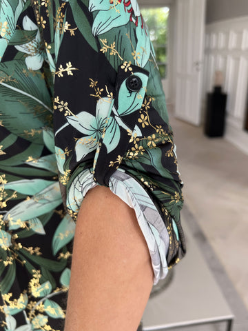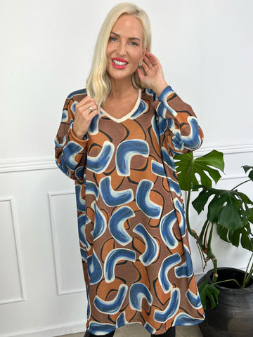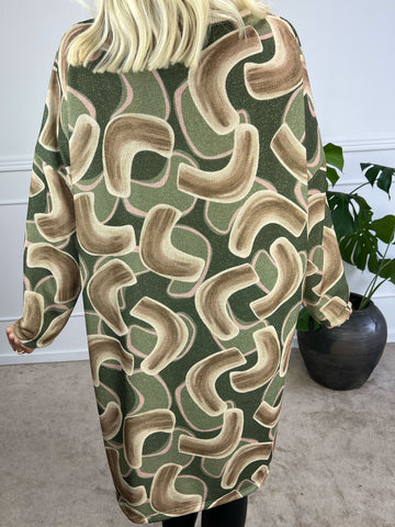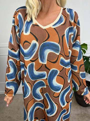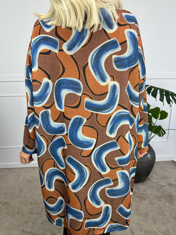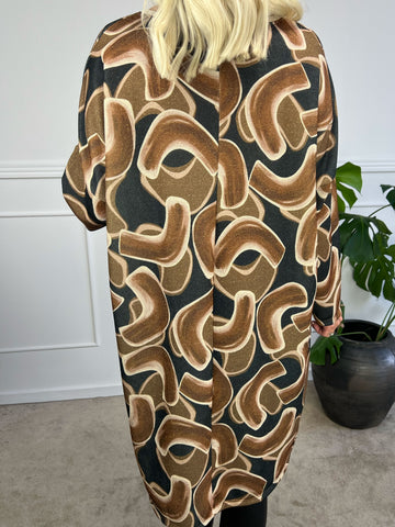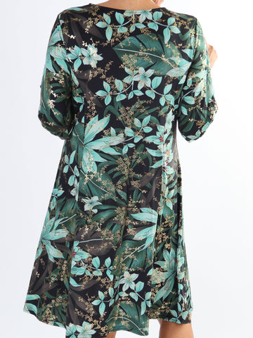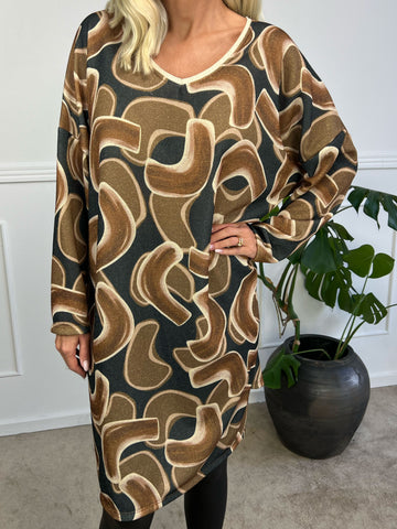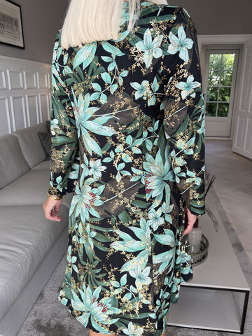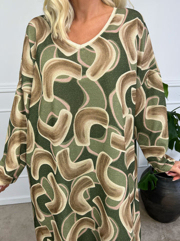 Maj Long Sleeve - Elastisk plus size kjole i print med gulddetaljer