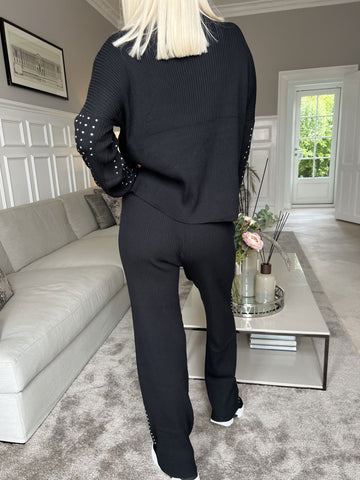 Yasha - Blød strikkjole i strækbart stof pyntet med similisten