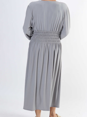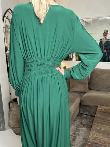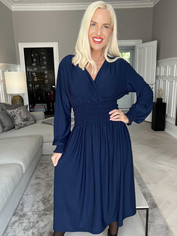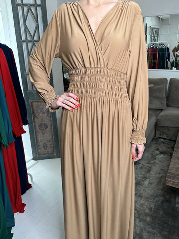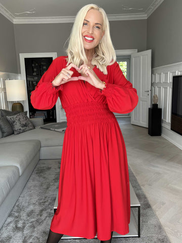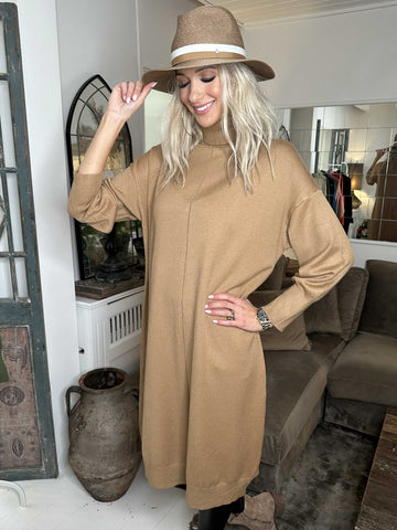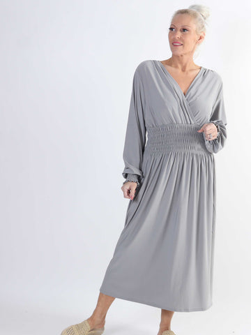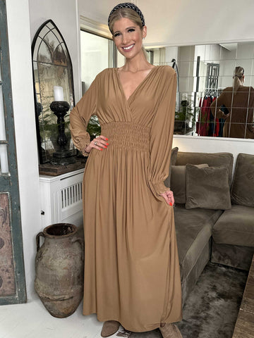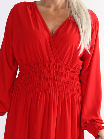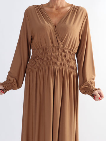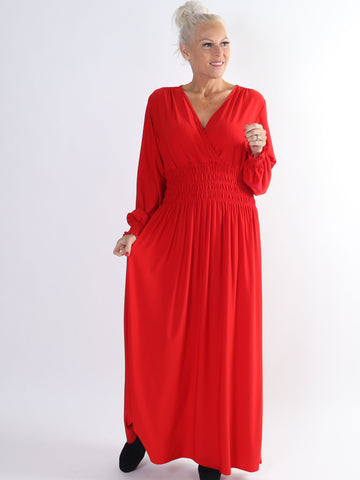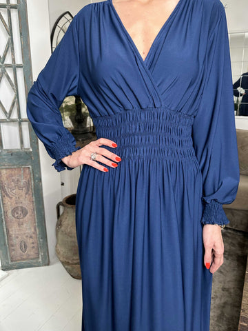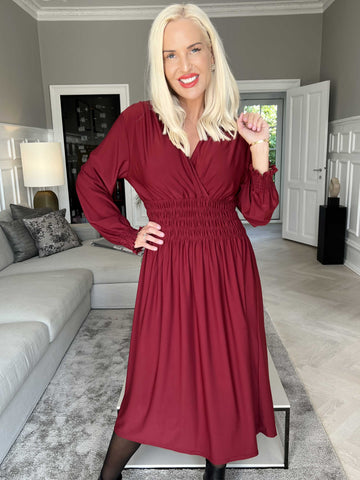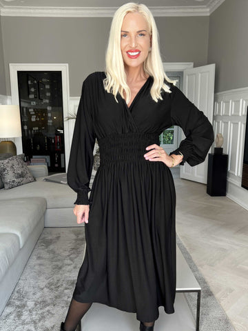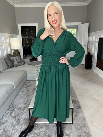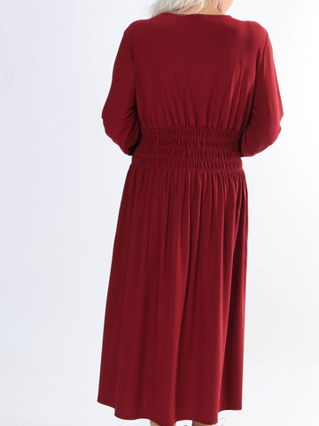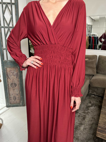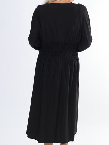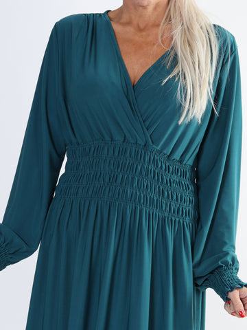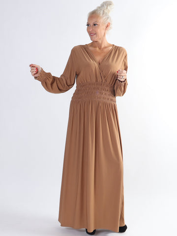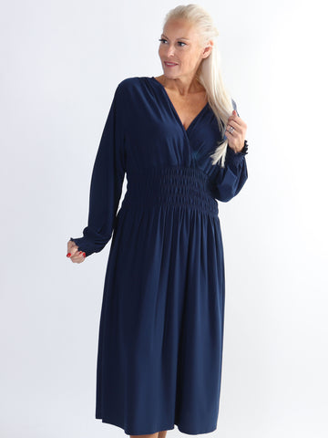 Pams Plain Midi L/S - Elastisk kjole med smock og lange ærmer