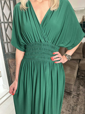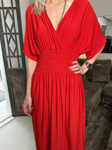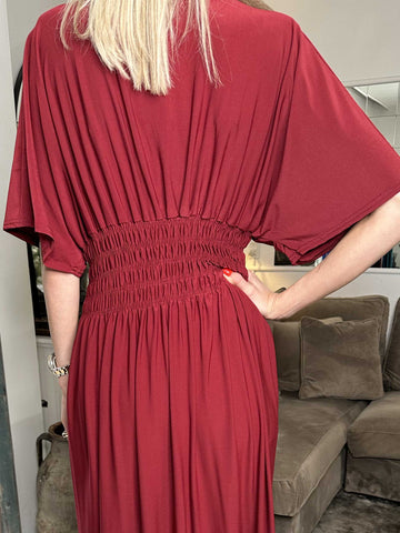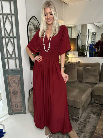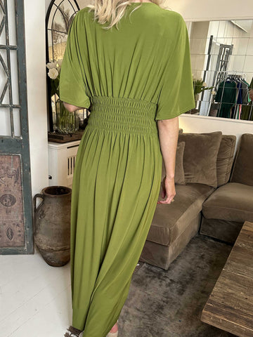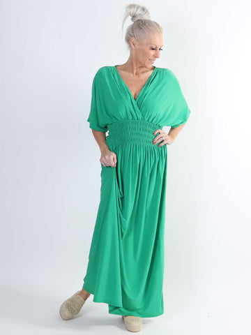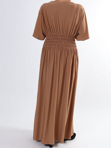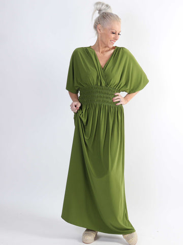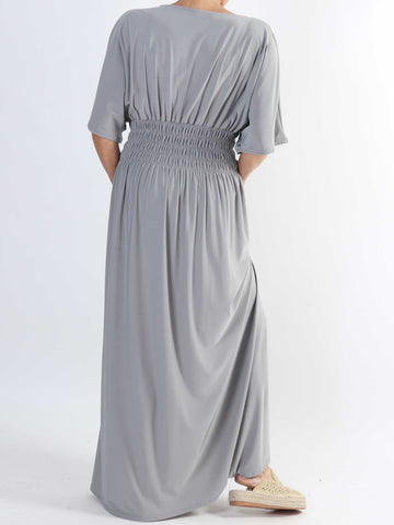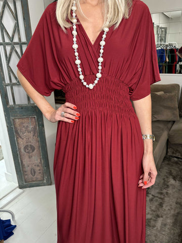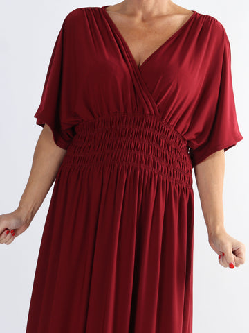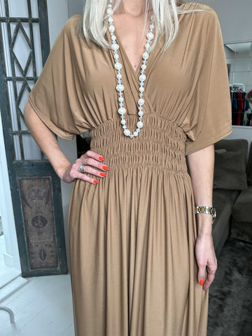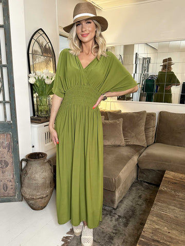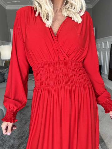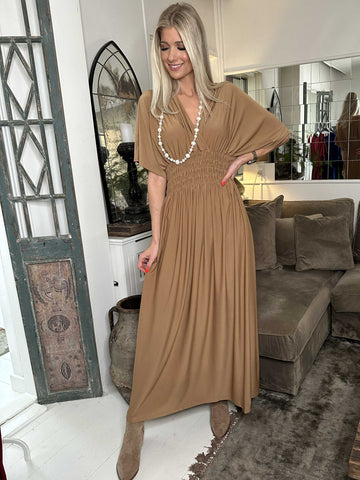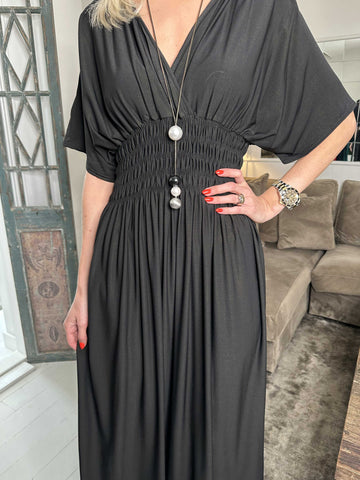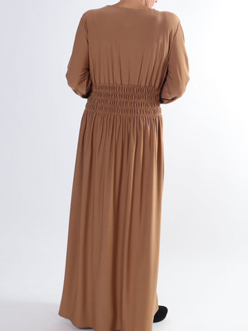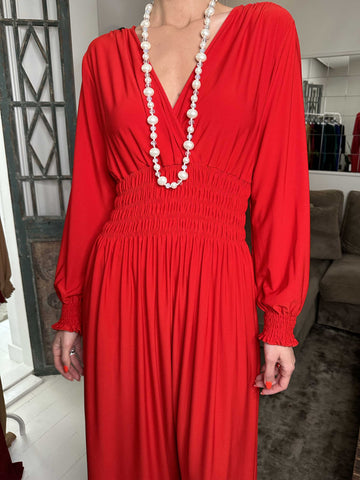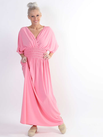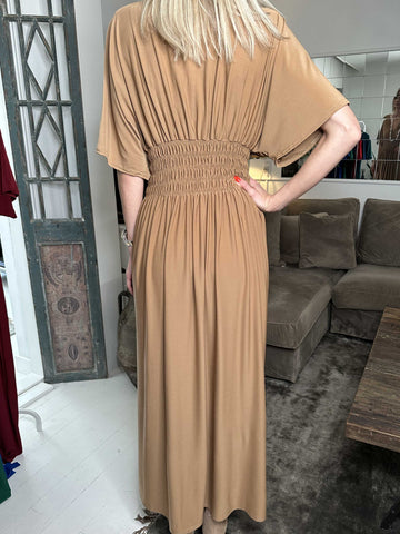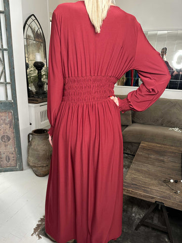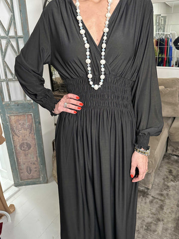 Pams Plain Midi L/S - Elastisk kjole med smock og lange ærmer