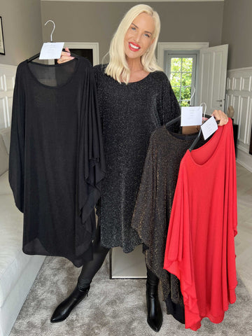 Almira Glitter - Plus size tunikakjole med glimmertråde og løse ærmer