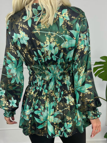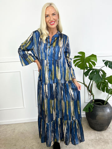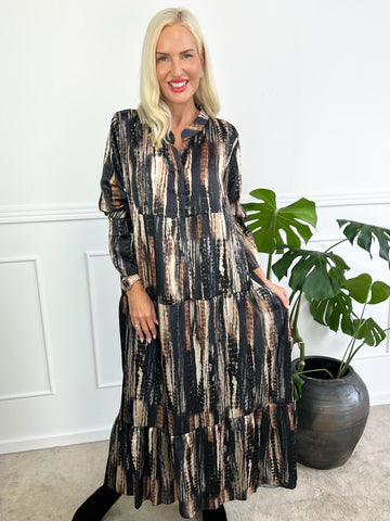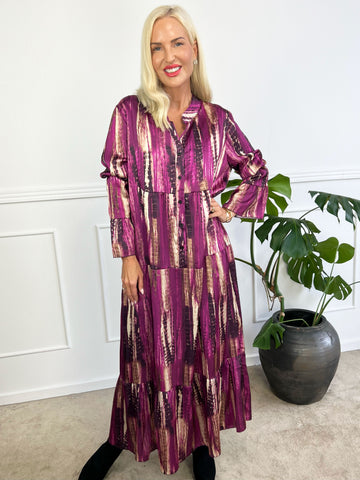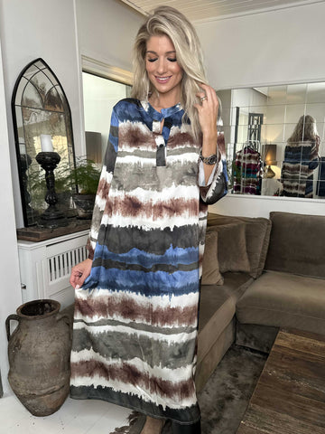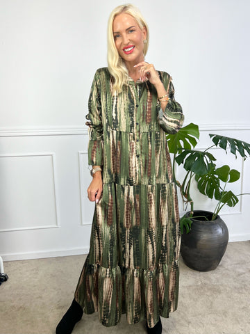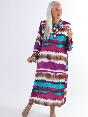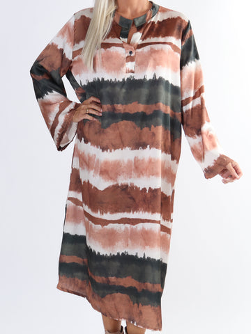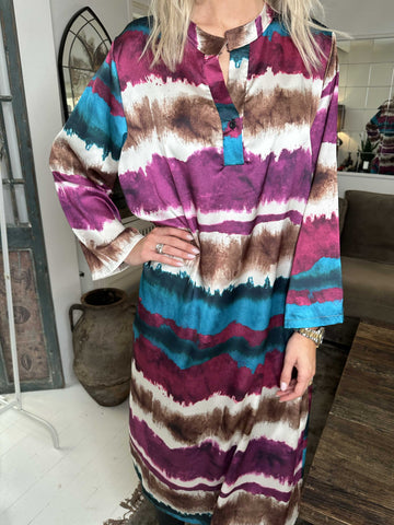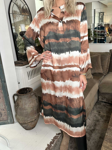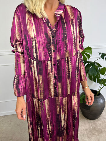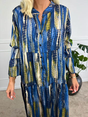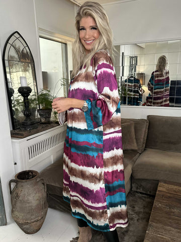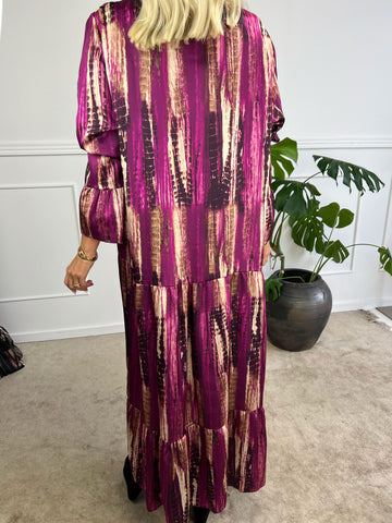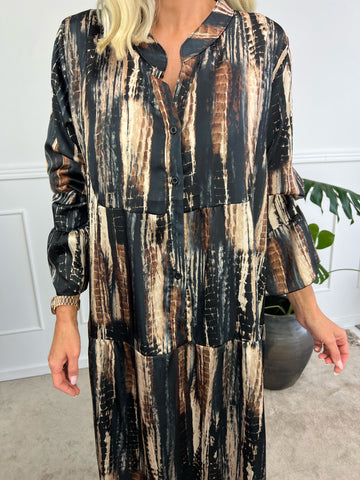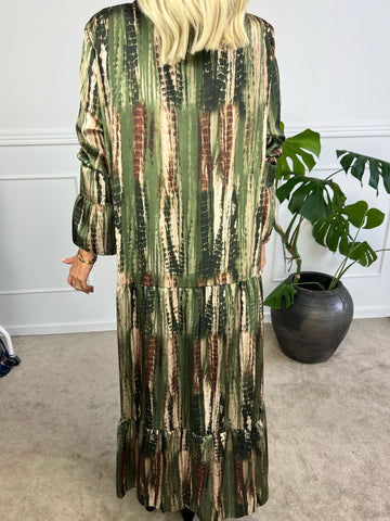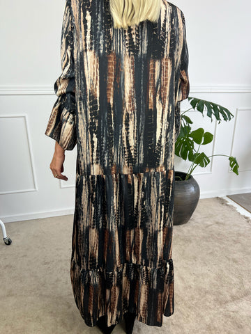 Flores - Lang mønstret lag på lag kjole i silkelook