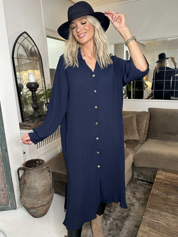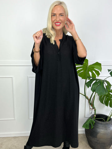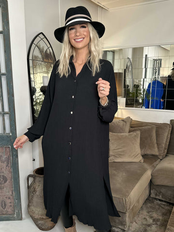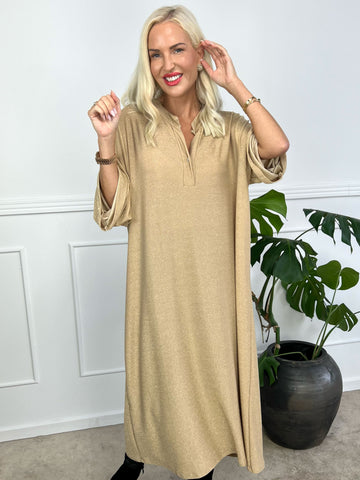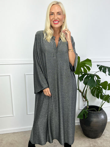 Damaris - Lang kjole i løs pasform med glimmertråde
