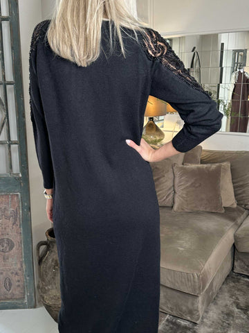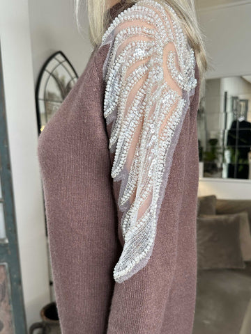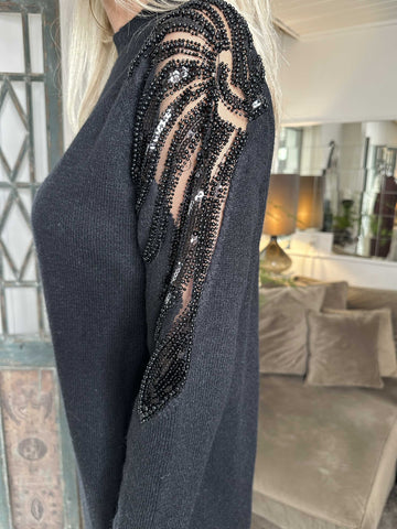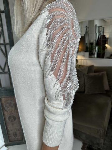 Laila - Strikkjole med pailletter og perler på skuldrene