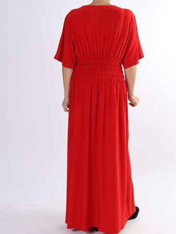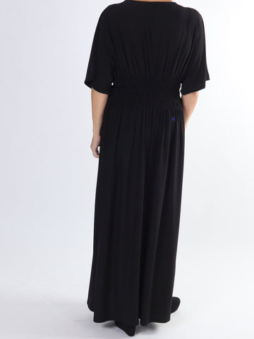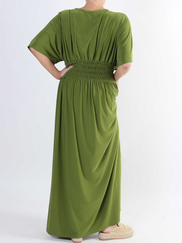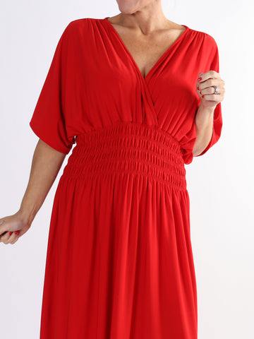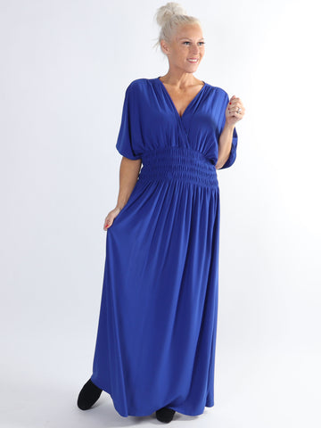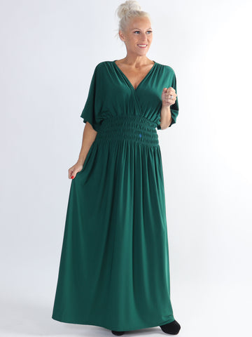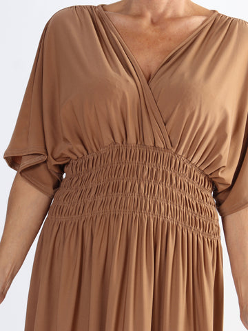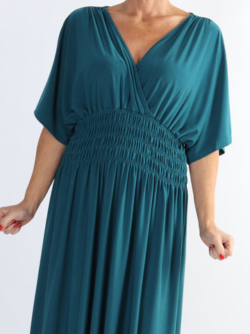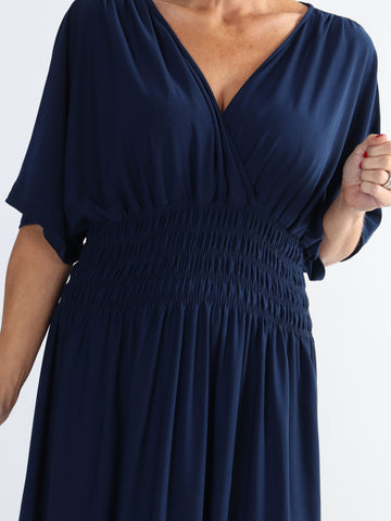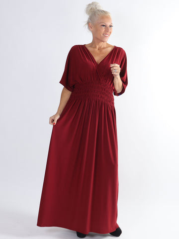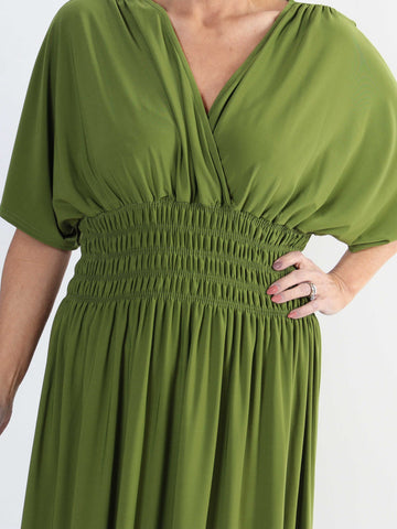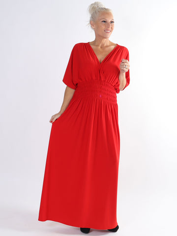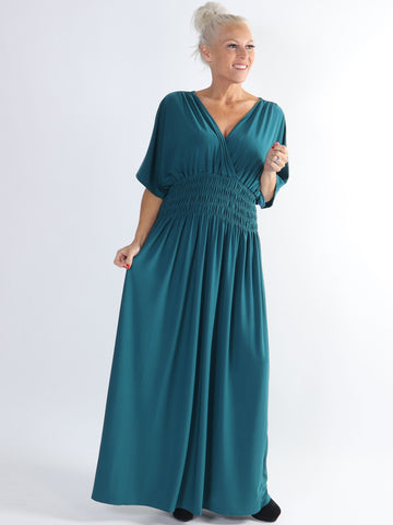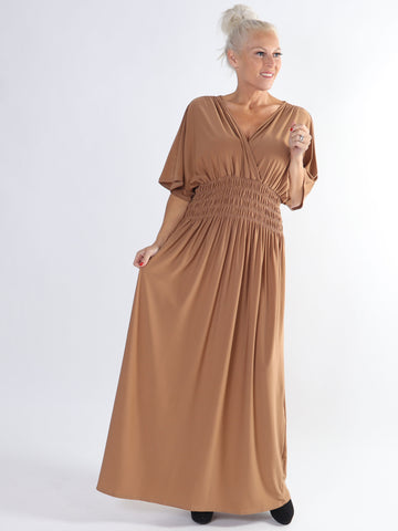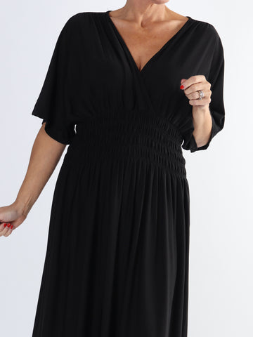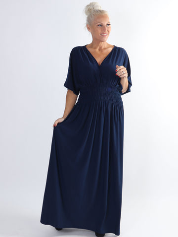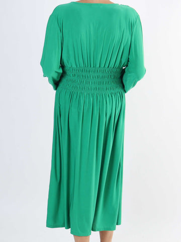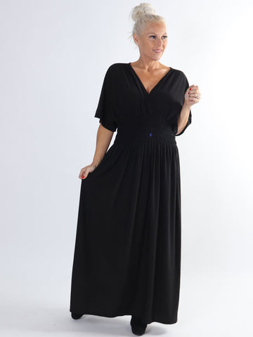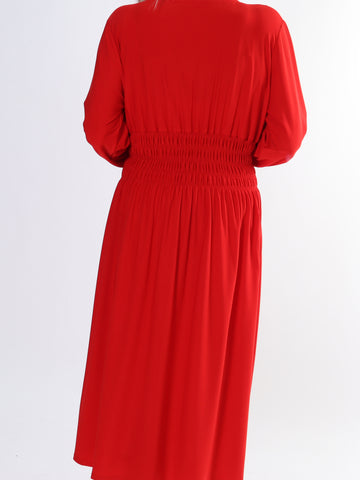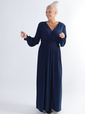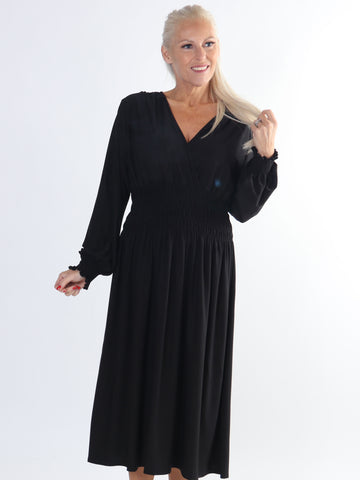 Pams Plain Midi L/S - Elastisk kjole i plus size med smock