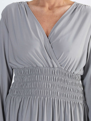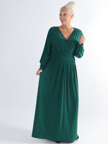 Pams Plain L/S - Elastisk plus size kjole med smock og lange ærmer