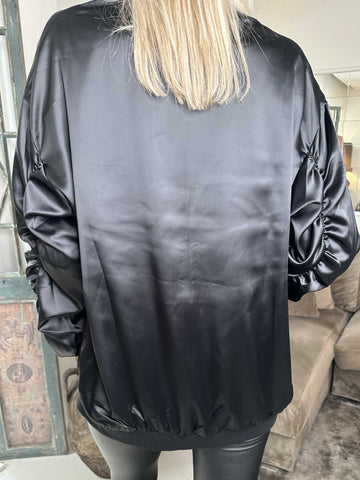 Martine - Blød bluse med broderet detaljer og similisten på ærmerne