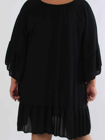 Novia Glitter - Elastisk plus size kjole med glimmertråde og flæser