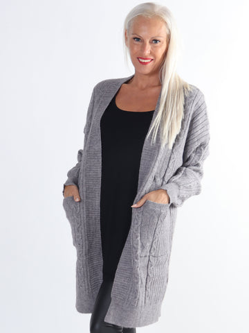 Valeria - Dejlig tyk plus size strikcardigan med lommer